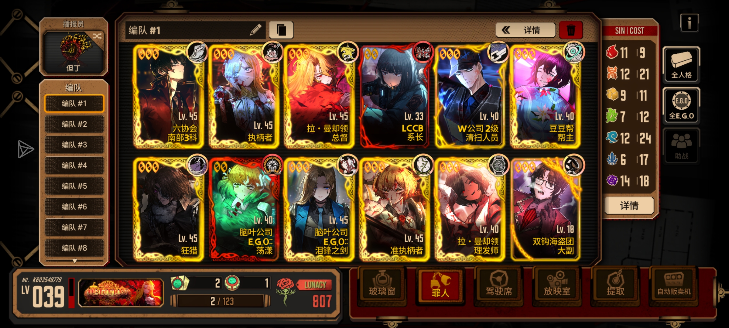 我平时没什么时间肝,这一堆人格没有一个是用碎片换的(幸好我特别欧,上次瓦夜甚至十连出了两个绝望罗和一个憎恶ego)