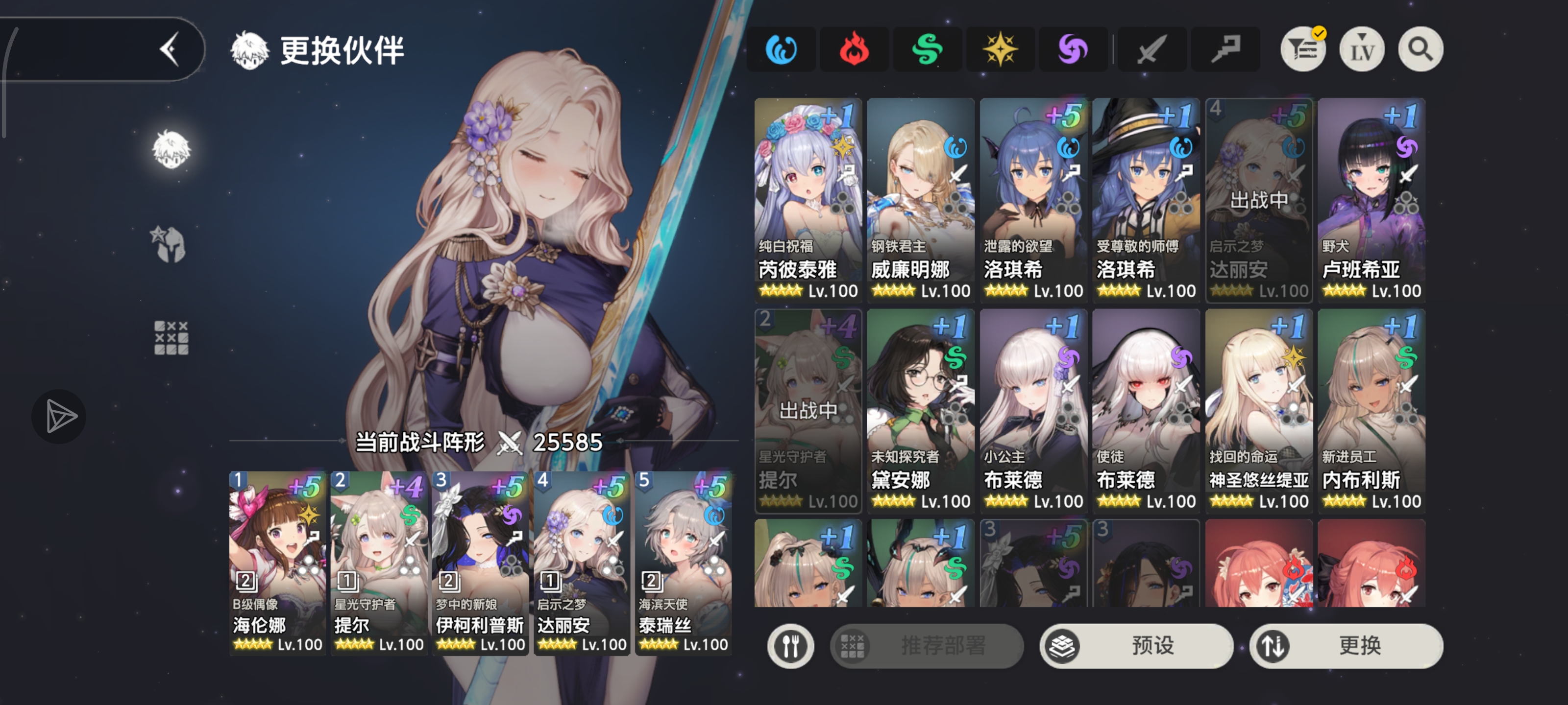 不知道你配对打什么,推图的话就B偶+绿帽+泰瑞斯+提尔+其他练的好的物理C,想凹暴击的话B偶换黎维塔或者铁面具