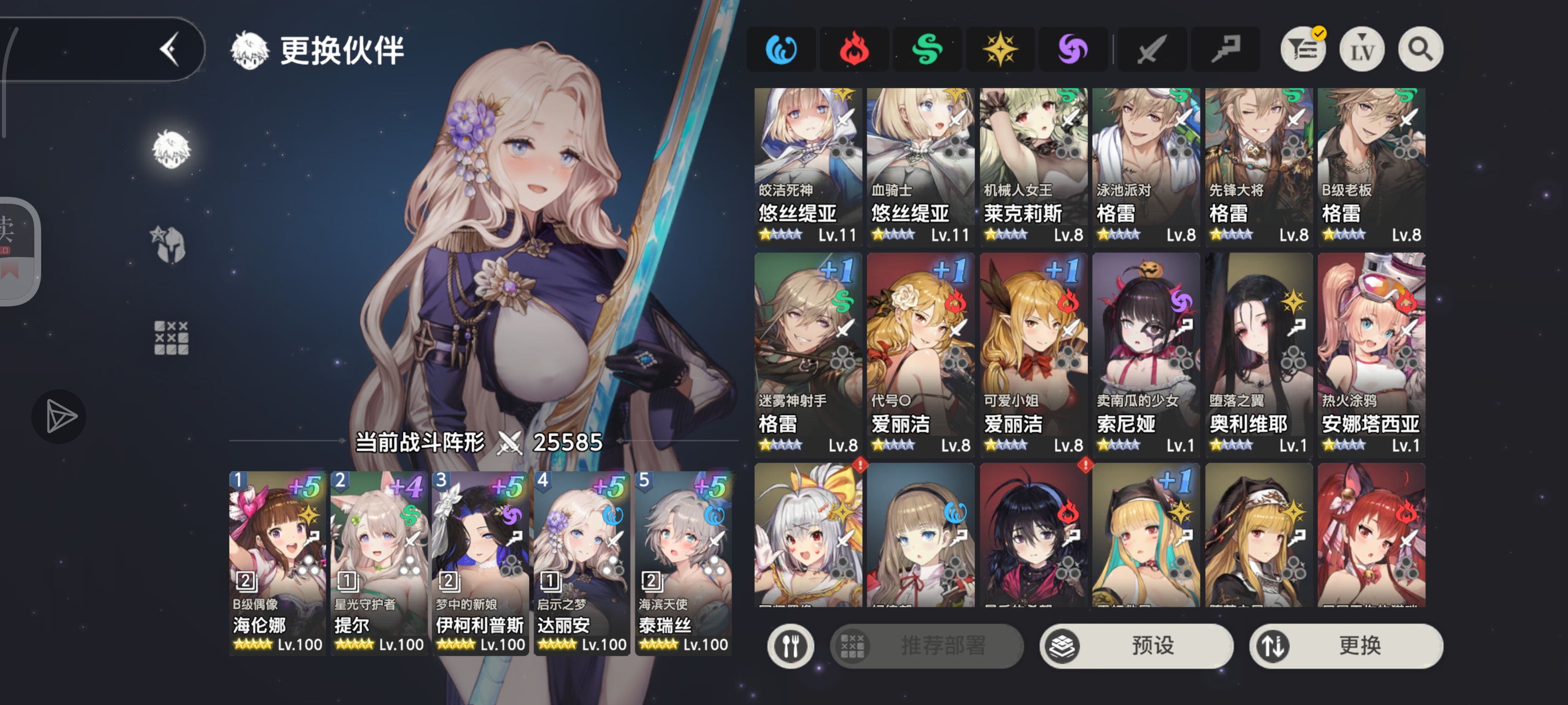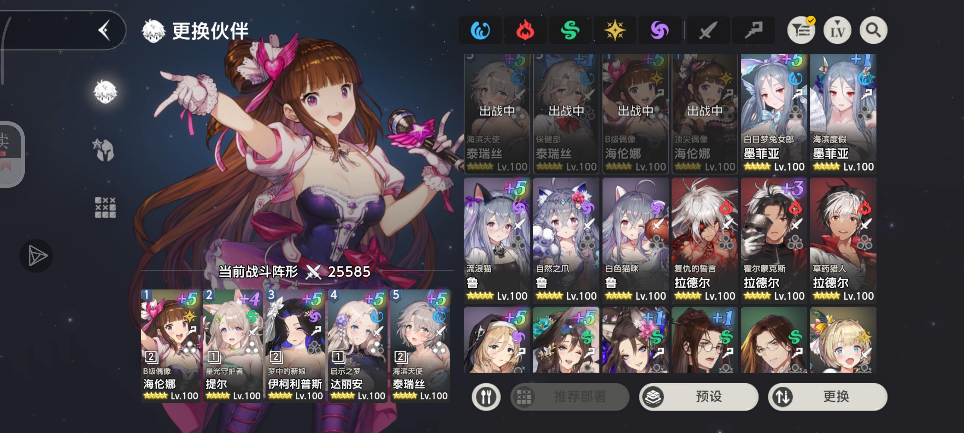 把大魅魔换成拉德尔,海伦娜换成黎维塔。这两个加攻击力,泳装泰瑞丝加伤害,另外两个就是输出
