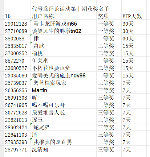 代号鸢评论活动第十期获奖名单