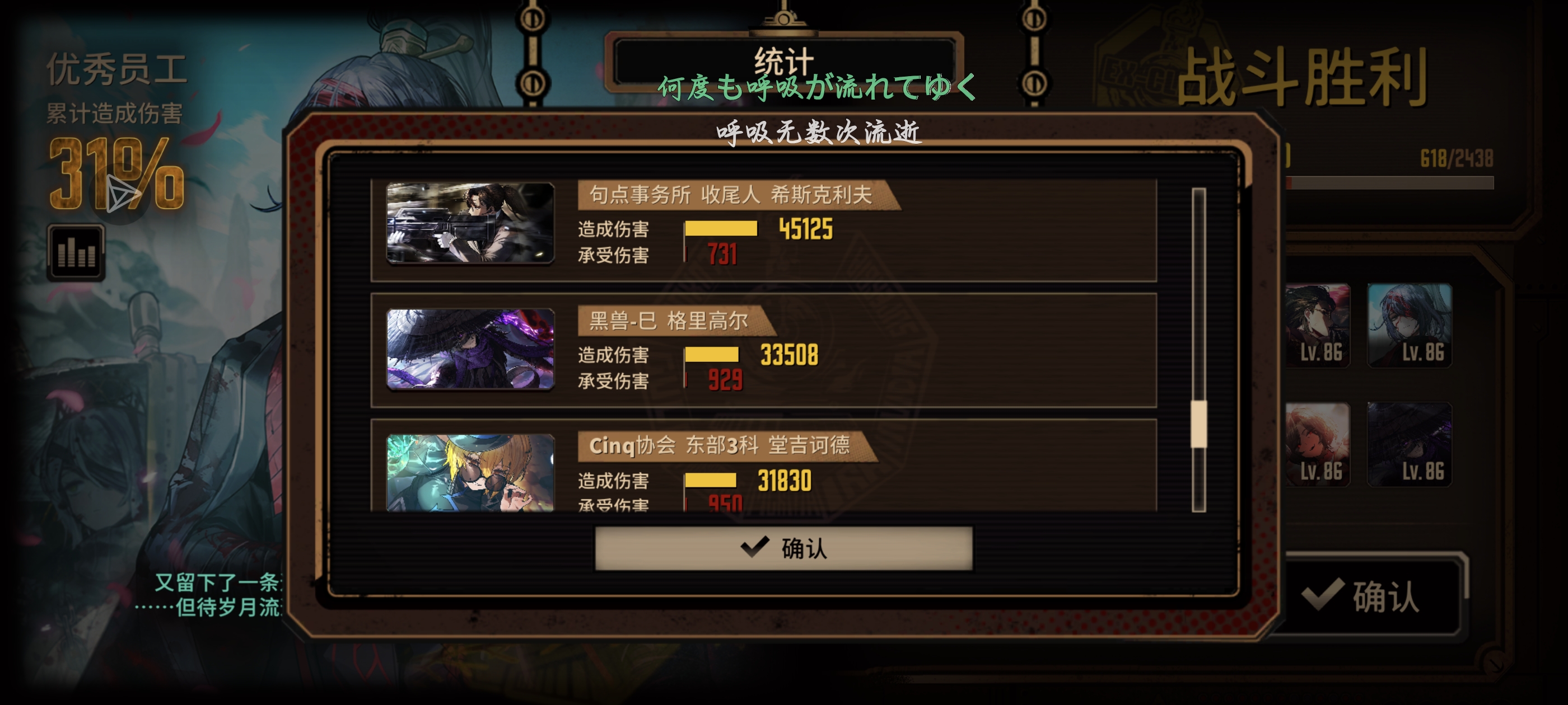打到十天层发现只触发两个呼吸饰品,原来以为是君主宝问题但只有蛇虫全换三,看了一下效果发现三破蛇虫三技能没破裂,就又退出去给虫叔升四破(原来资源是给佳佳的),难怪之前打伤害不高,兔子拼点能力不足,这下找到原因轻松多了