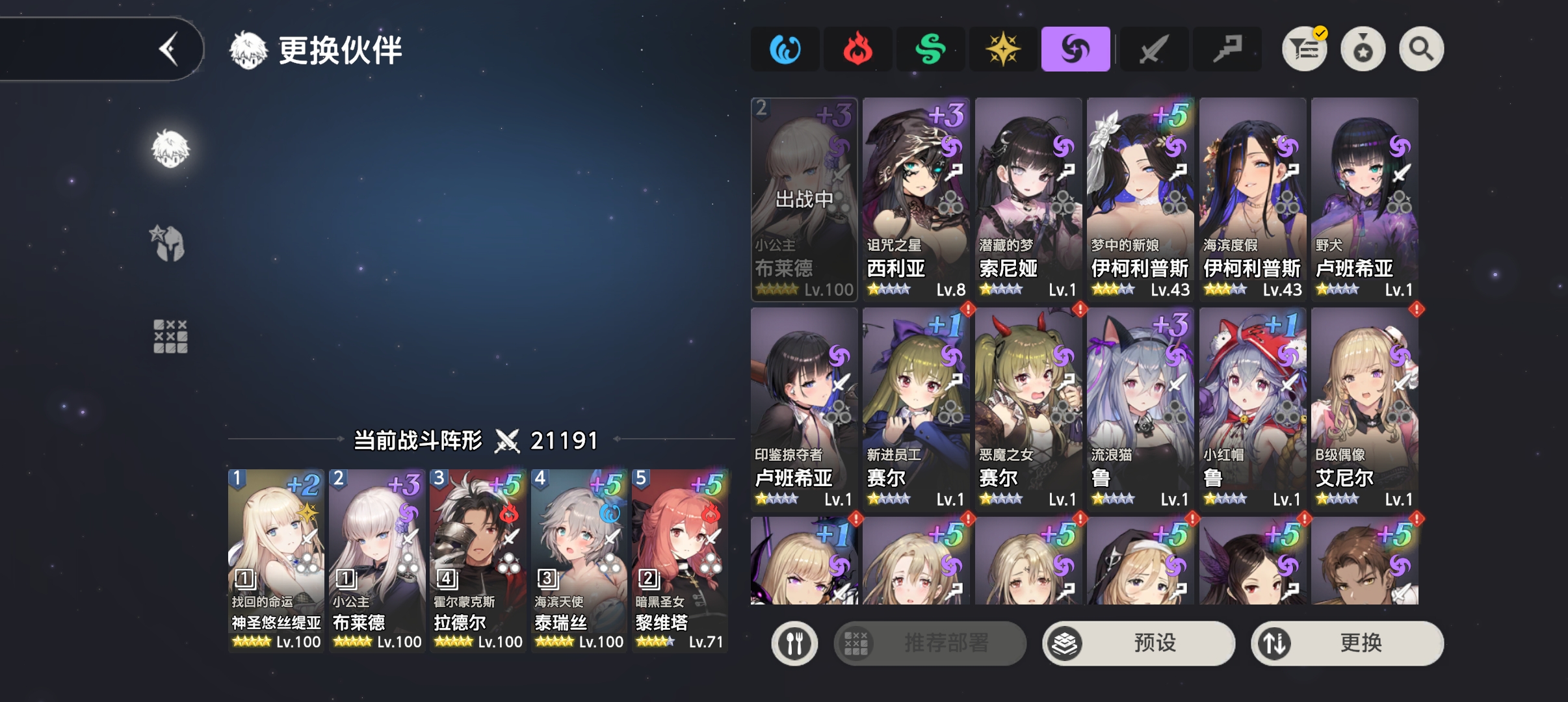 这个池子一般都用送的紫票抽,2.5周年有4个新角色和兔西,兔罗返场用红票抽这些