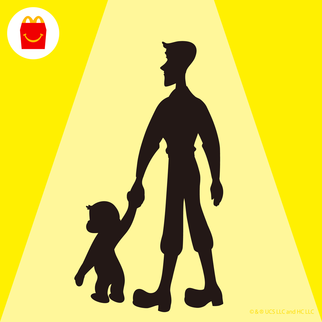 麦当劳下次开心乐园餐玩具可能是"好奇猴乔治"。黄色背景、修长人物轮廓和类似猴子的剪影成为线索。