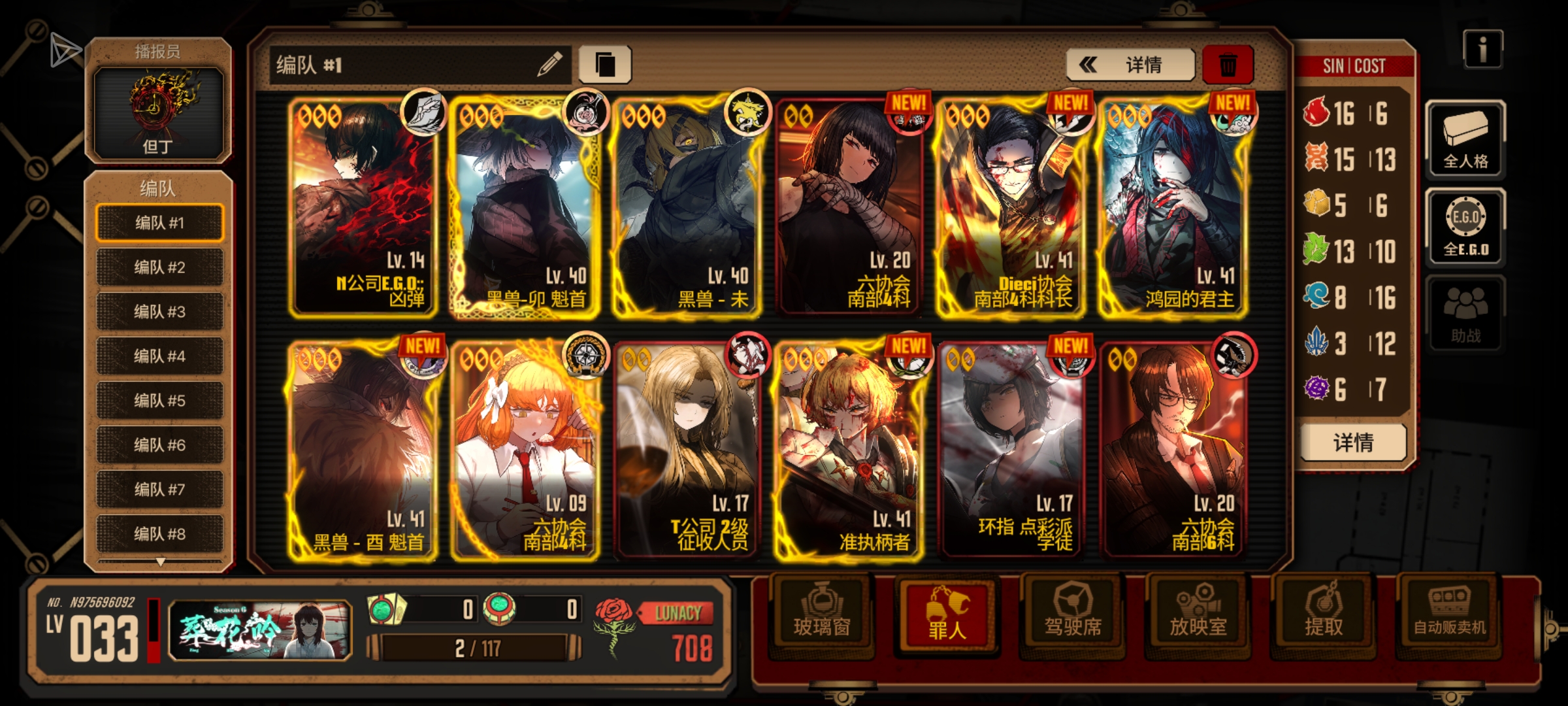 打到第6章等级全给新人格提去了,主力多在40,41级