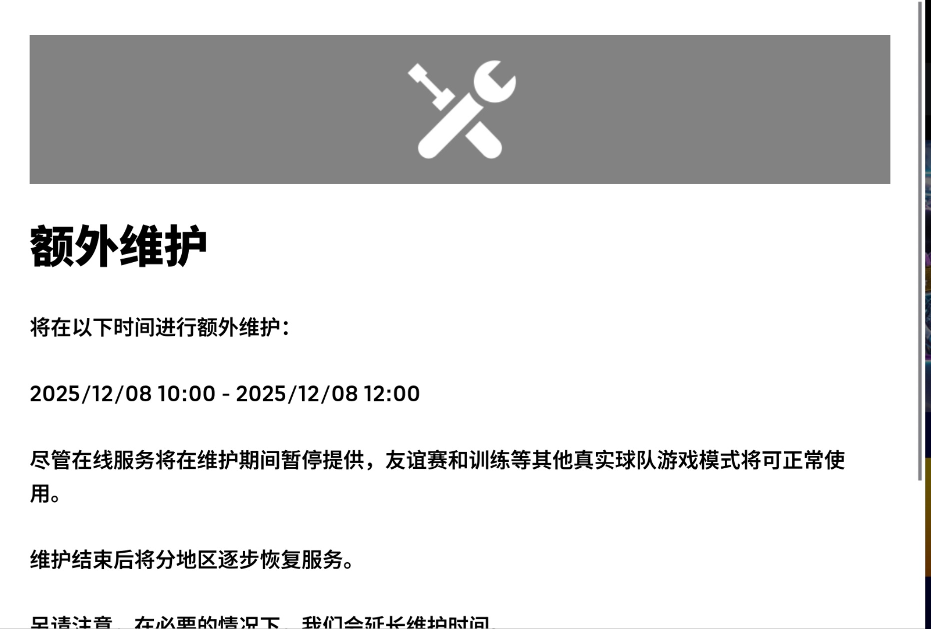 【维护通知】2025年12月8日将进行额外服务器维护