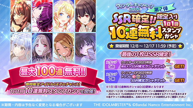 集齐7个印章可兑换「冬季活动2025特别TwinkleCollection P-SSR卡池SSR必得券」!