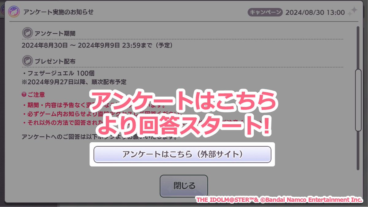 《偶像大师闪耀色彩》问卷调查进行中!参与即送100羽毛宝石