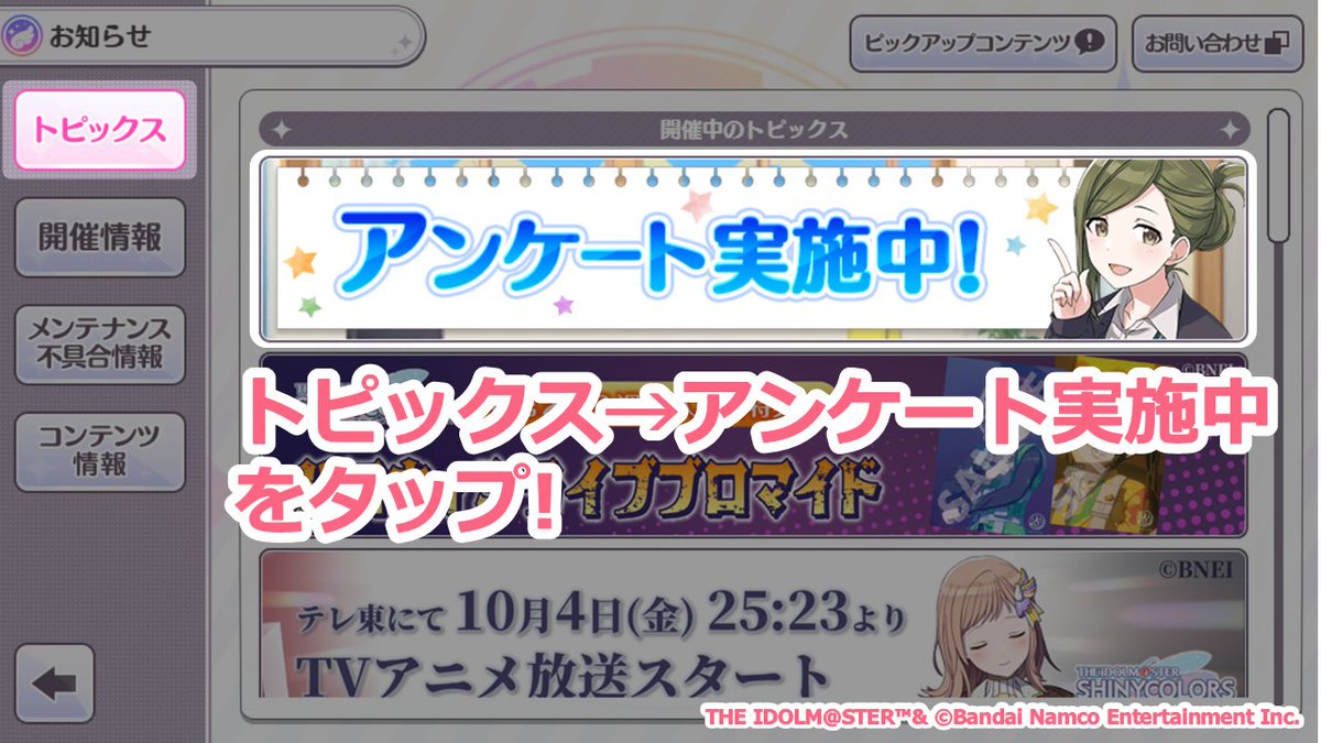 目前正在开展关于《偶像大师 闪耀色彩》的问卷调查!