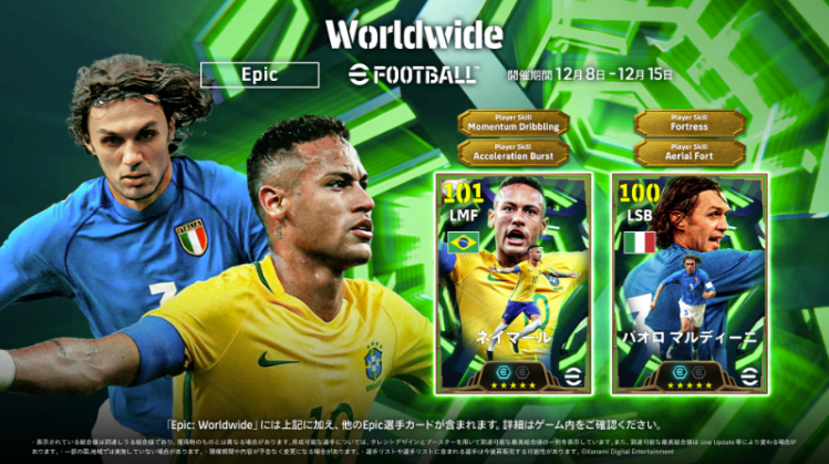 科乐美在《eFootball》中举办"Epic: Worldwide"活动…保罗·马尔蒂尼和内马尔登场