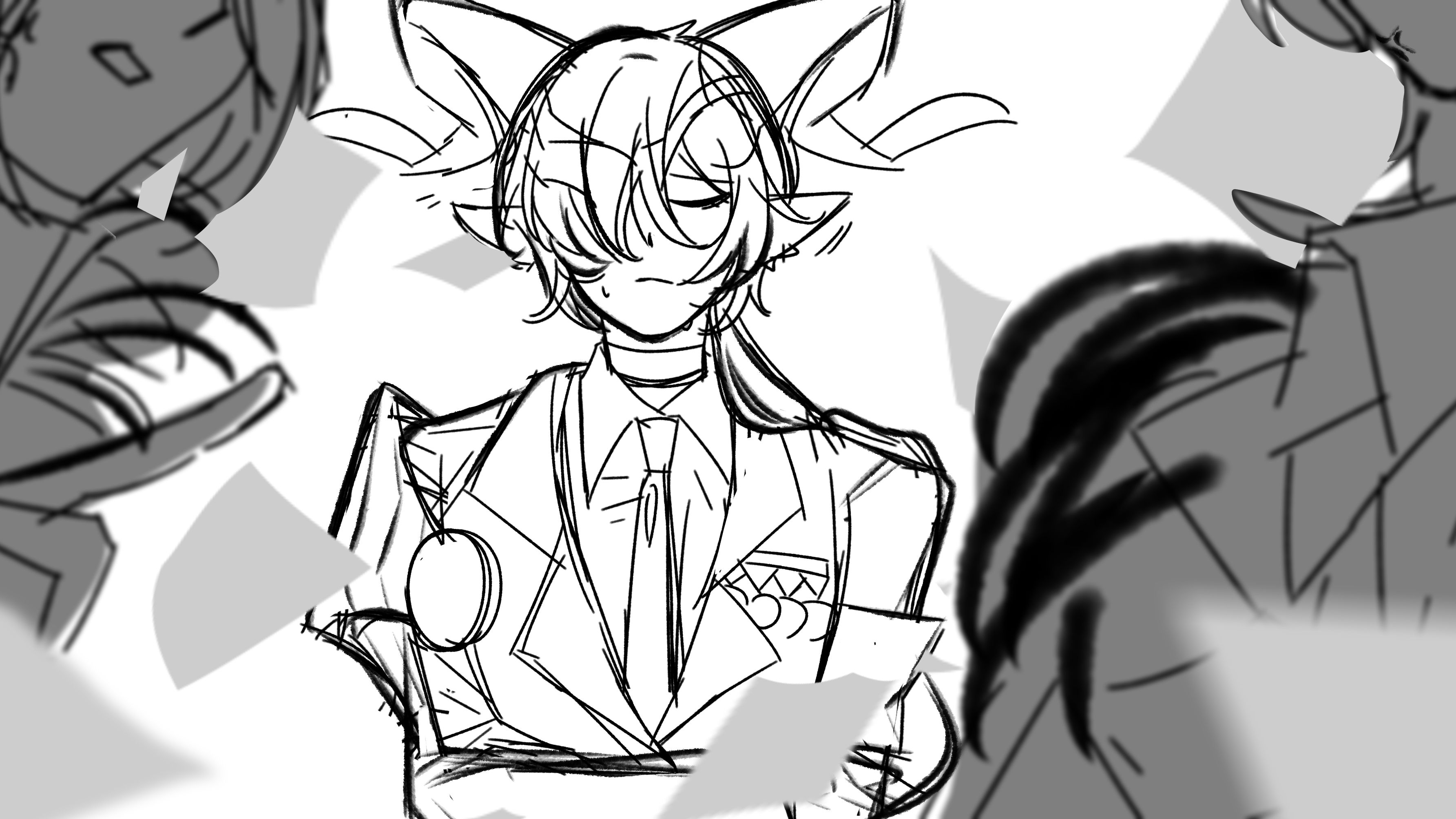 两张风格不一样… 因为我昨天晚上用的笔刷找不到了😢 我还蛮喜欢之前狂放的感觉的 其实第一张更符合莱辛的形象 娃娃脸男大😋