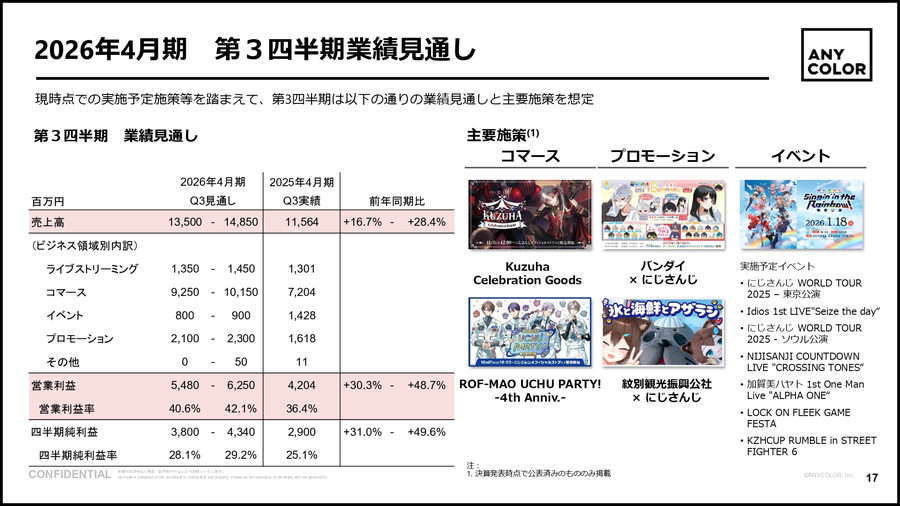 【财报速报】虚拟偶像团体"彩虹社"母公司ANYCOLOR中期业绩大幅增长,但近期利润持平。表面看似增长放缓,实则仍处于"计划线"内,预计第三季度将重回高速增长轨道