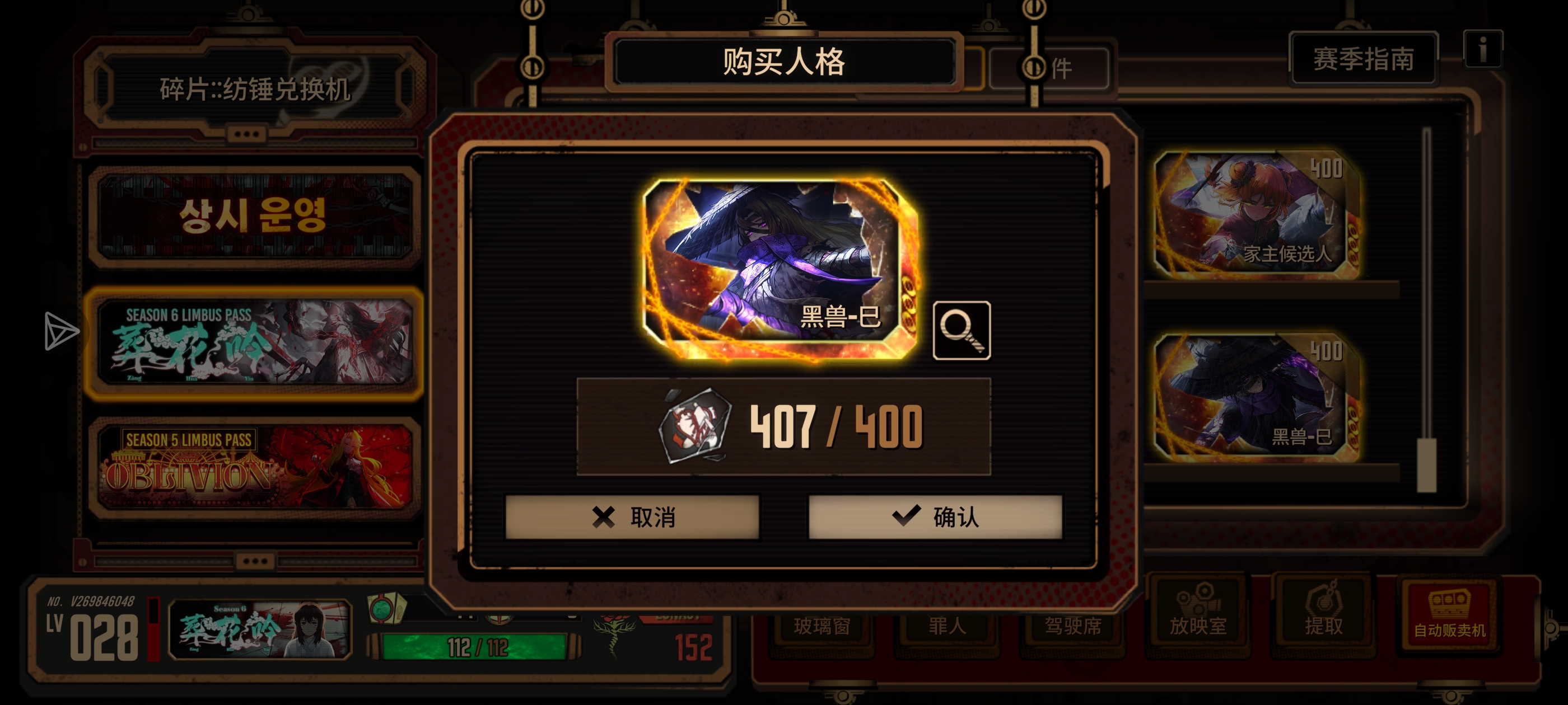 优先赛季人格,下次瓦夜肯定早着呢,换赛季的话碎片箱子减半,现在不换纯亏