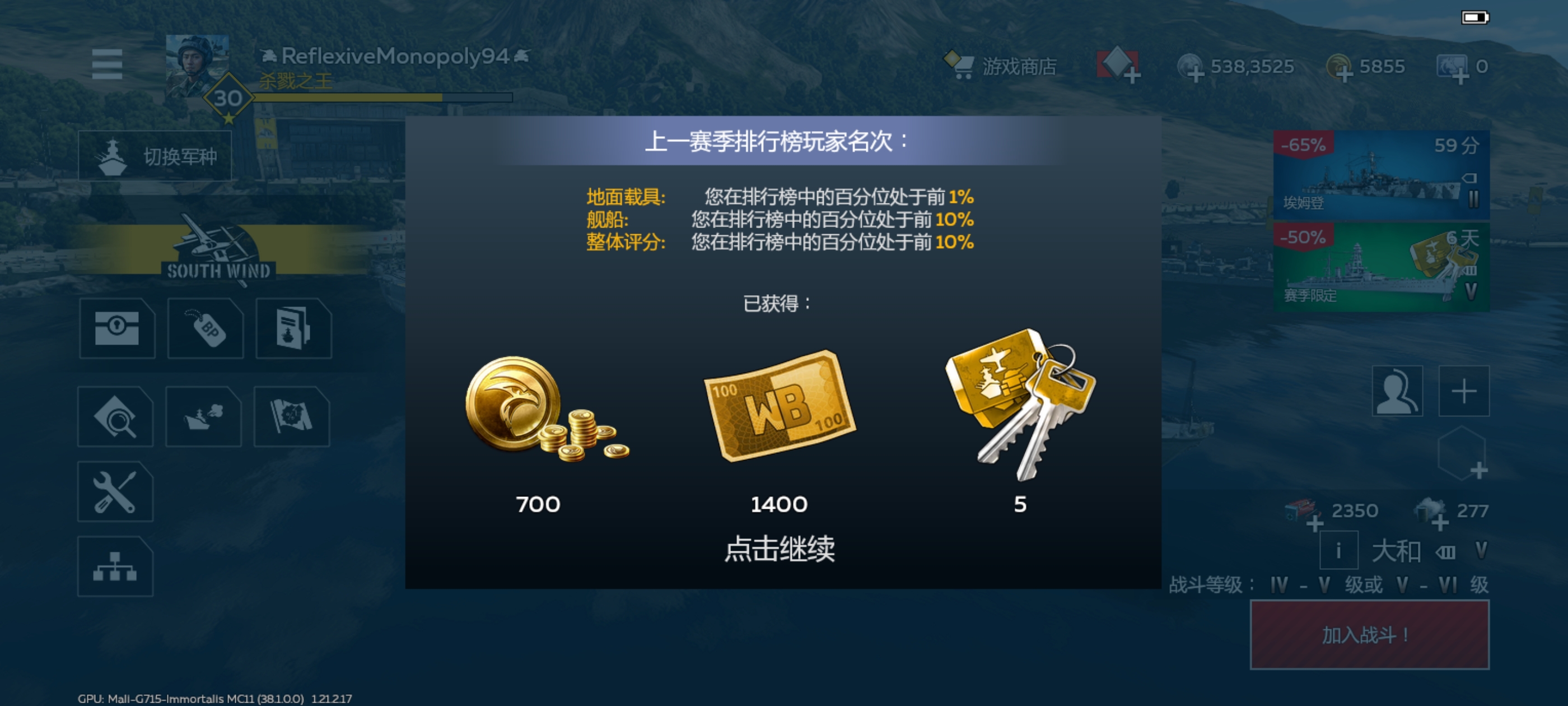 各位战争雷霆玩家 Bv vd给你们发了多少奖励 说实话 打这个排行榜确实费劲 要是再给我来一金车,或者一搜金色海战载具 那就确实非常的不错 Bv vd就是要多多照顾我们零氪玩家