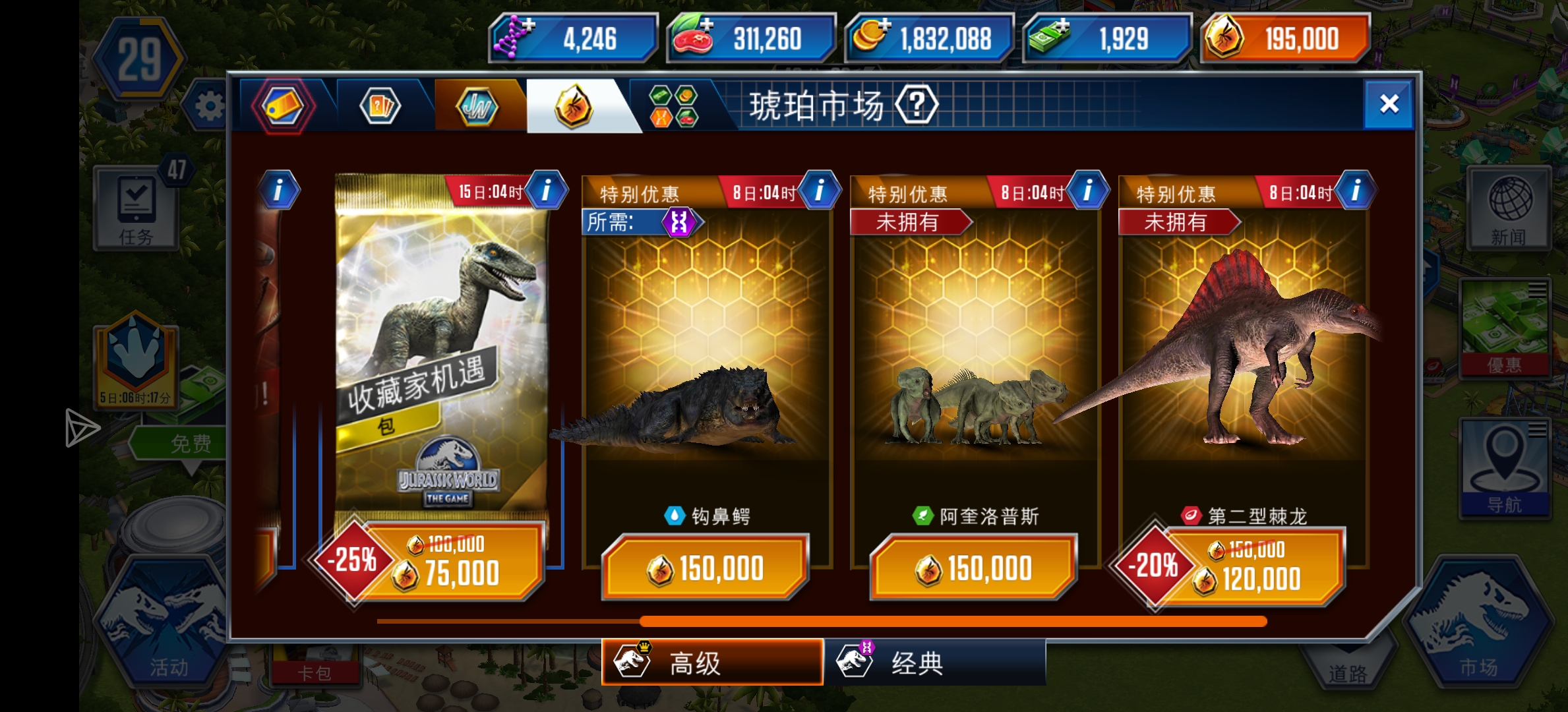 看到大家基本上都在美颌猎龙或者中华龙鸟或者那个夜光什么螈,但是我商店这里目前只刷了一个阿奎洛普斯,我看到它凶残干不过前面那几个群体,要不要还是等之后?