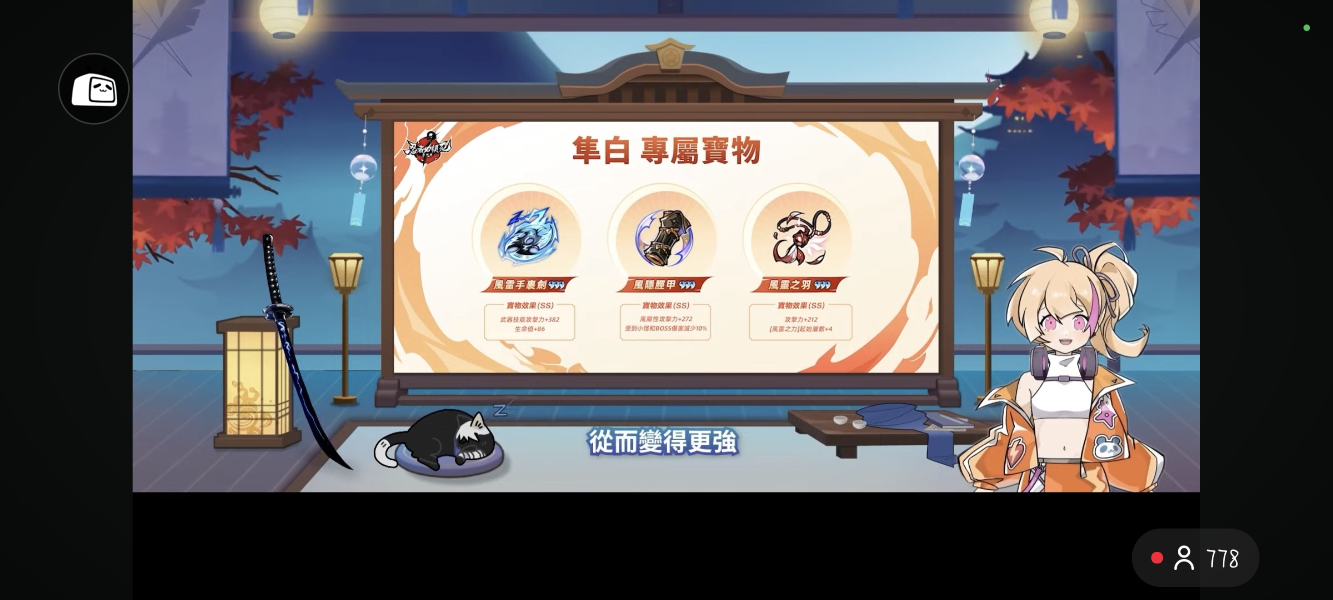 2.四个自选武器还是2.5周年那老四样,百雷风信织炎龙毫。3.四个自选忍者是龙焰星闪伊鹤洛青,洛青是限定,建议选