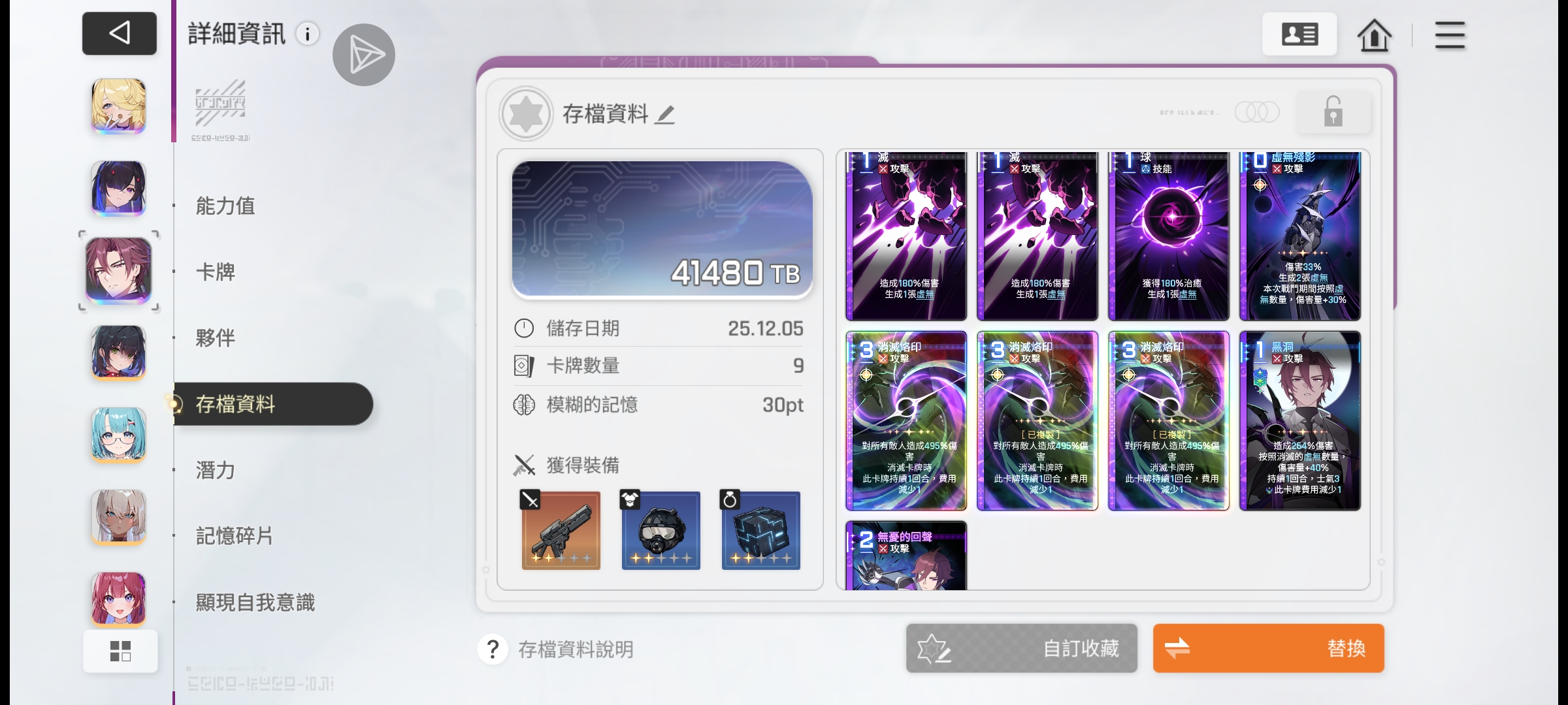 嗯嗯,可以搭配能稳定生成带有“消灭”属性的牌的人使用,看楼主存档三张消灭烙印,以此为基准输出稳定就要手上很多消灭牌,德蕾莎的零费刀、千鹤的生成斩多来几张,感觉就不错
