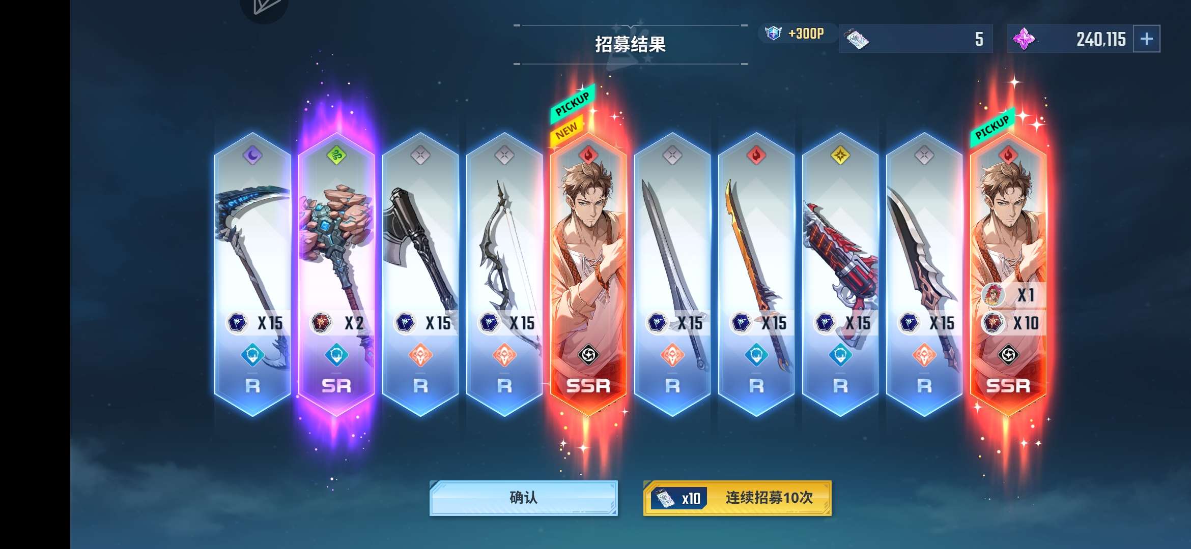 今天运气好,一发十连出三个😎