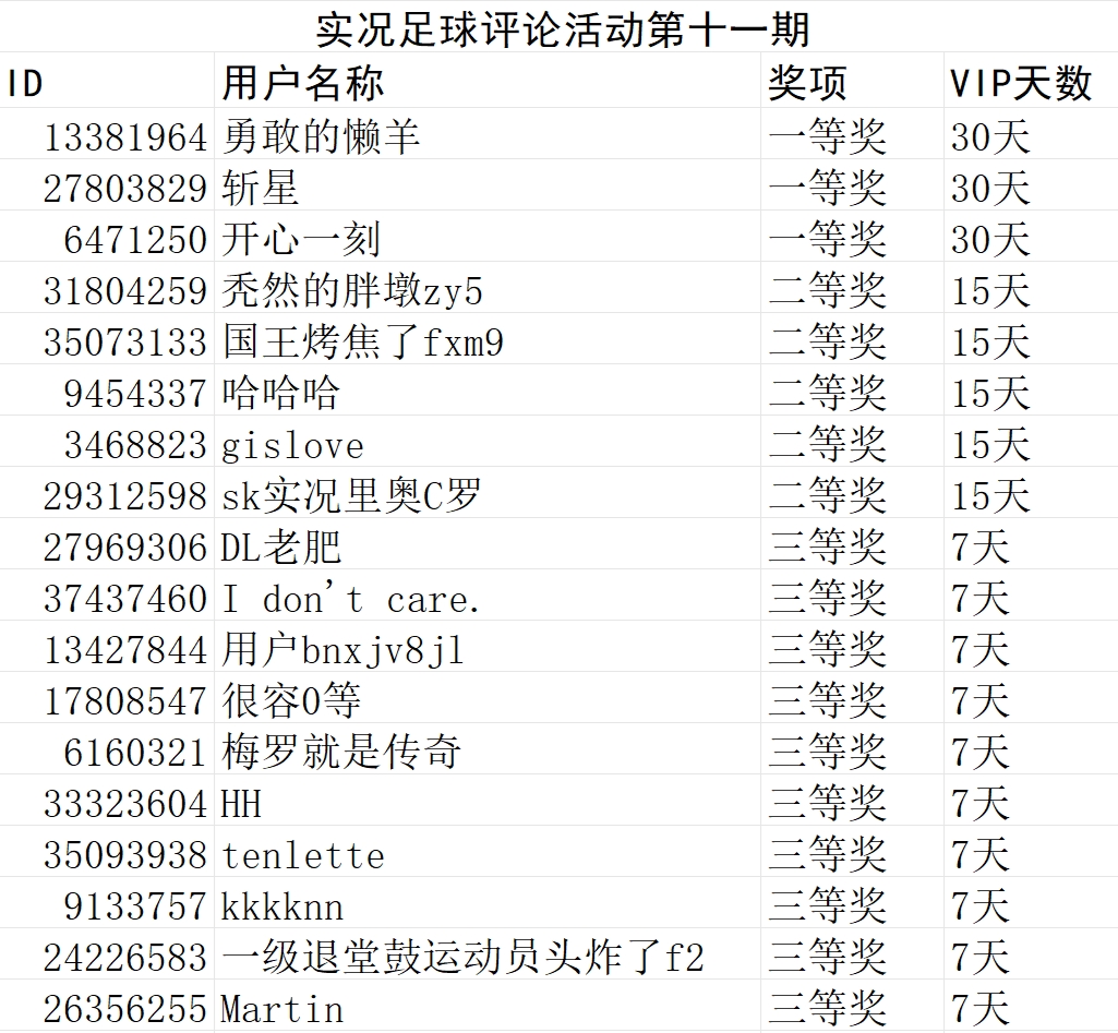 实况足球评论活动第十一期获奖名单
