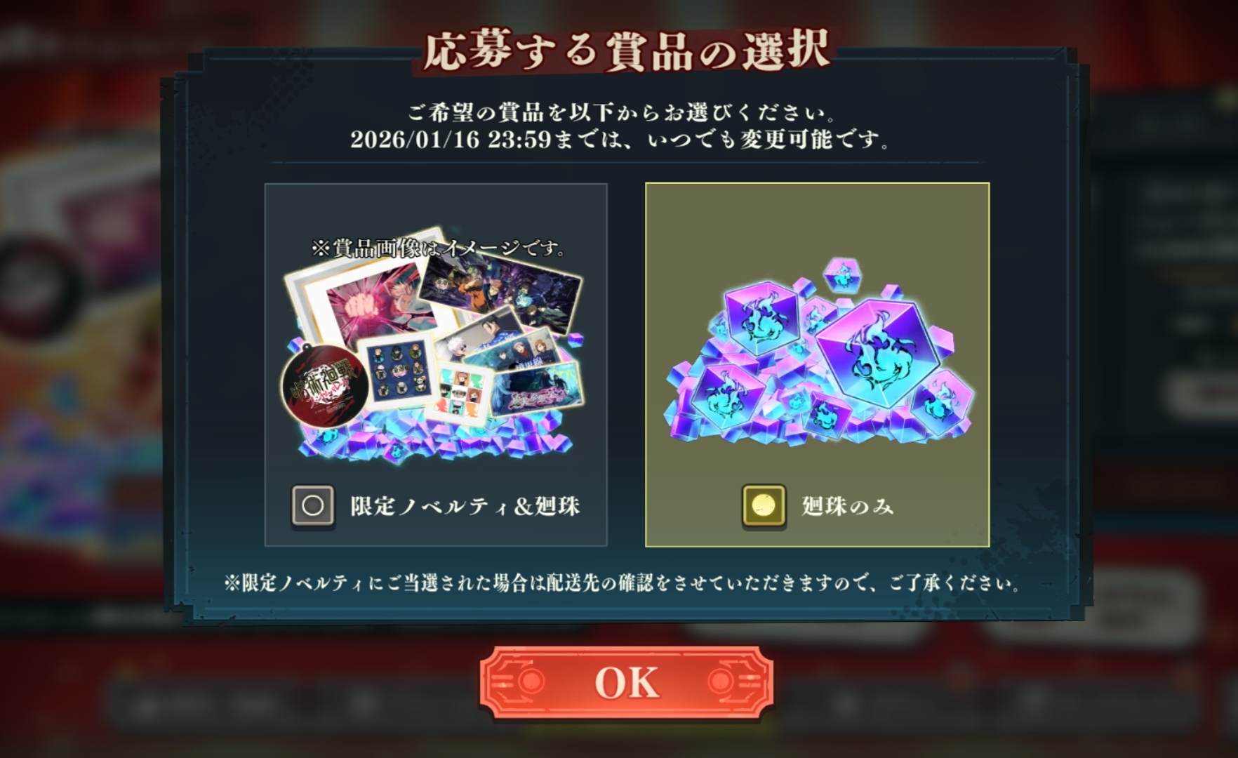 可以选择周边礼物或者回珠奖励