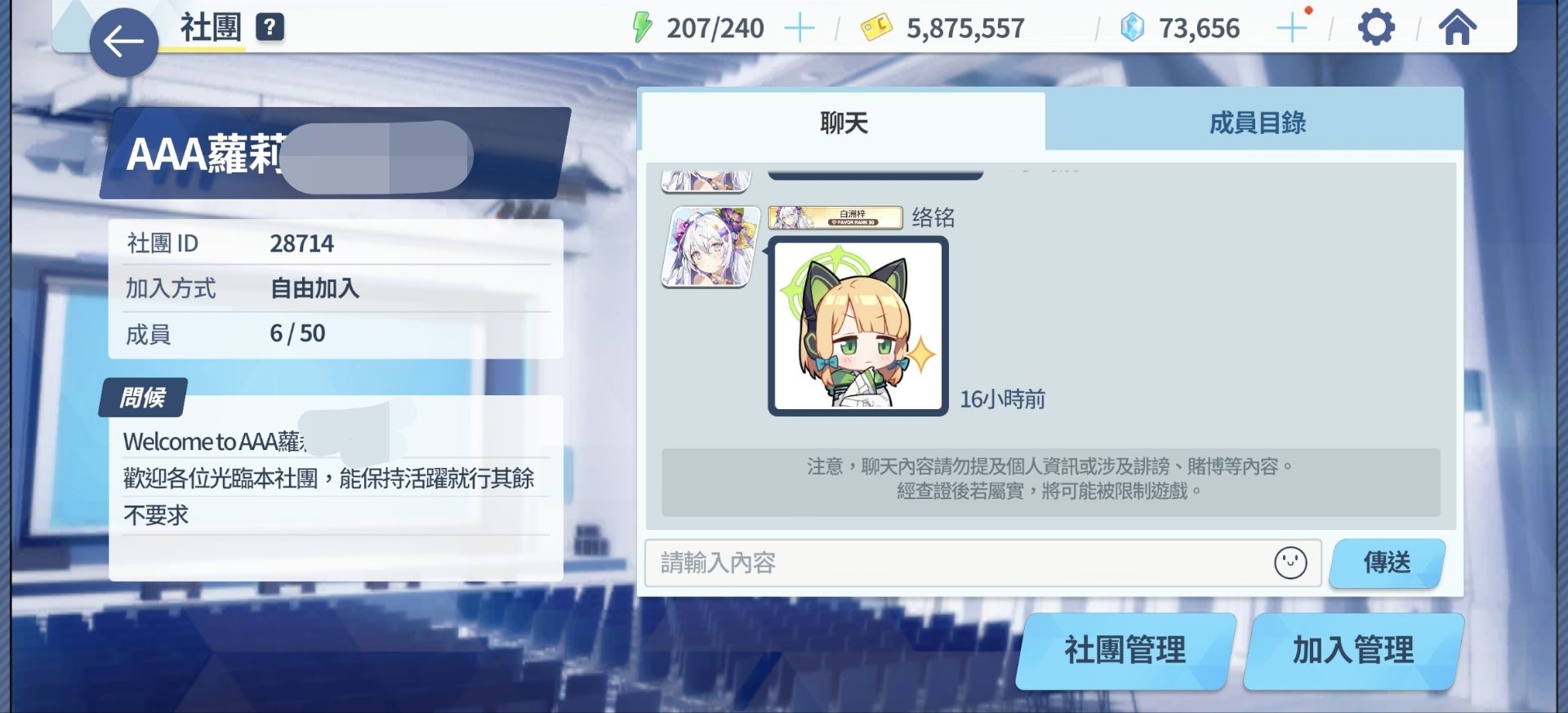 我们社团活跃很高的,只要不是很长时间不玩也不会踢人,后续人多了可能会建群,大家可以一起聊聊天~