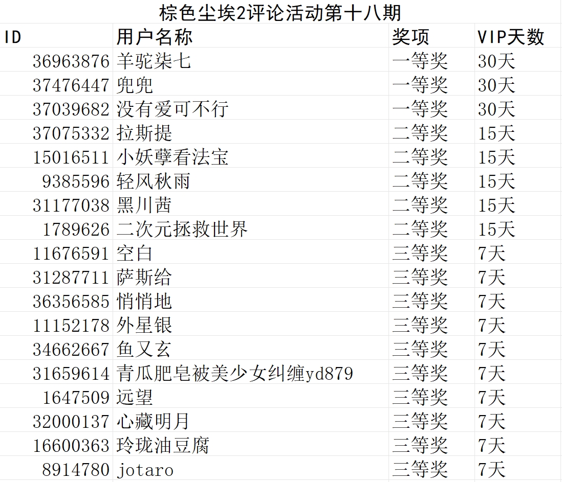 棕色尘埃2评论活动第十八期获奖名单