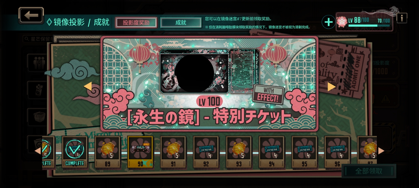 如果实在想要,不是没有办法。可以点镜牢等级旁边的加号,烧狂气拿