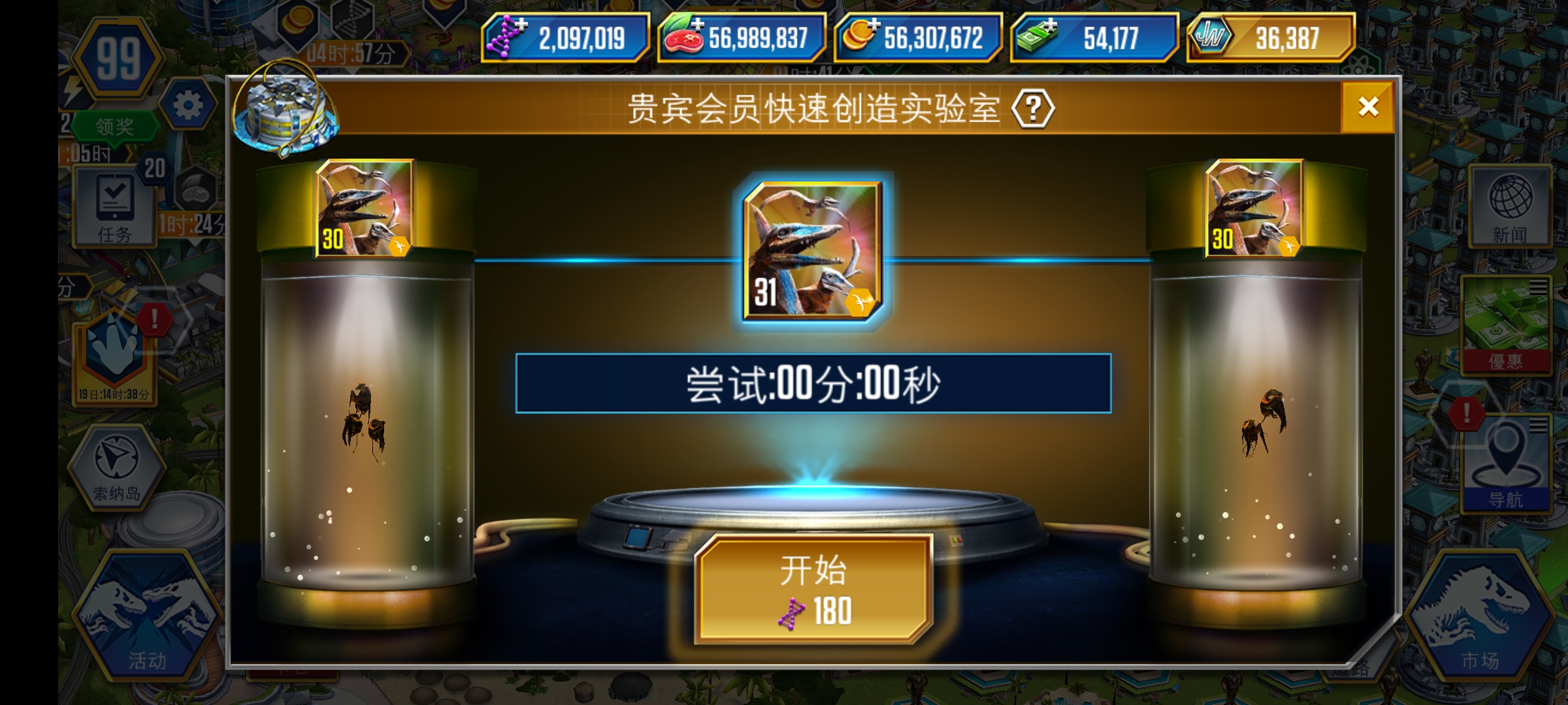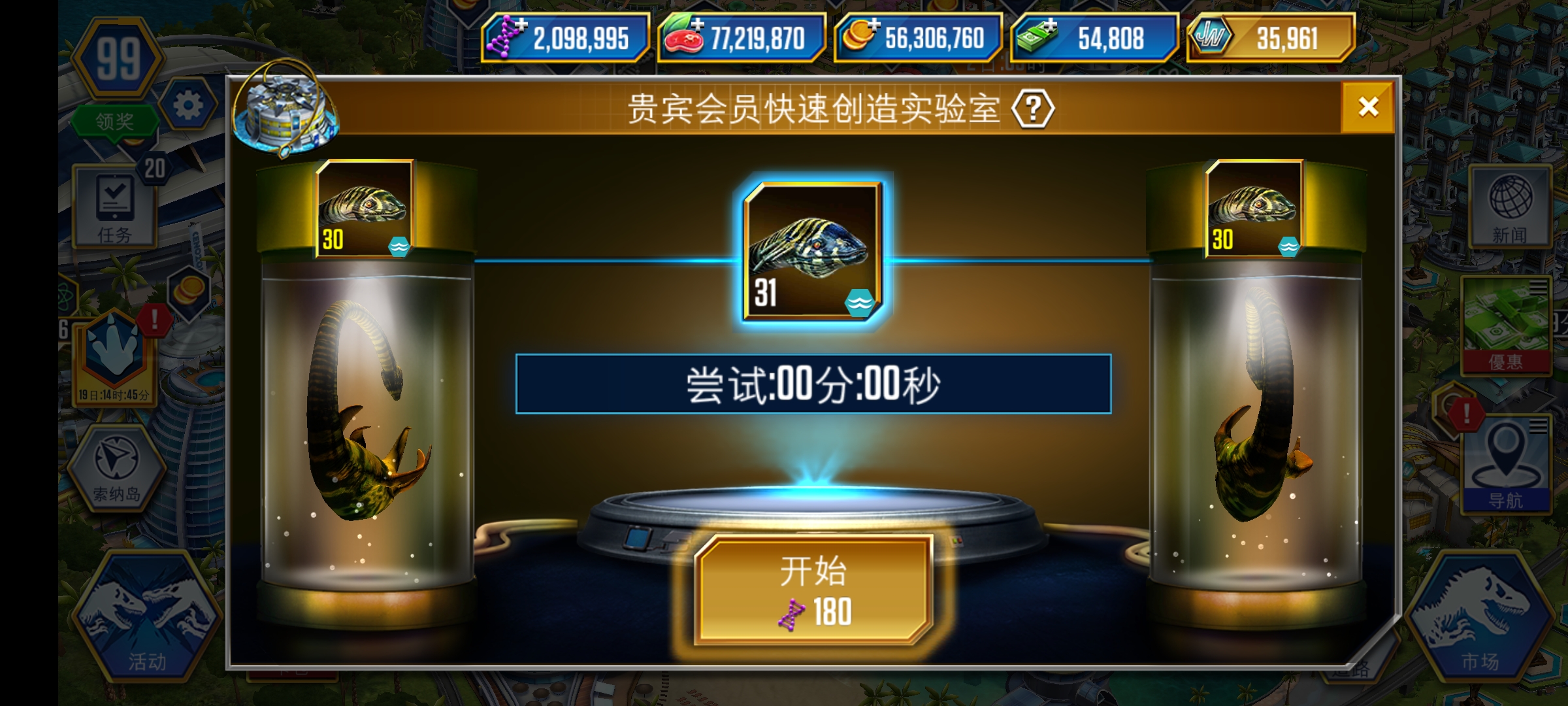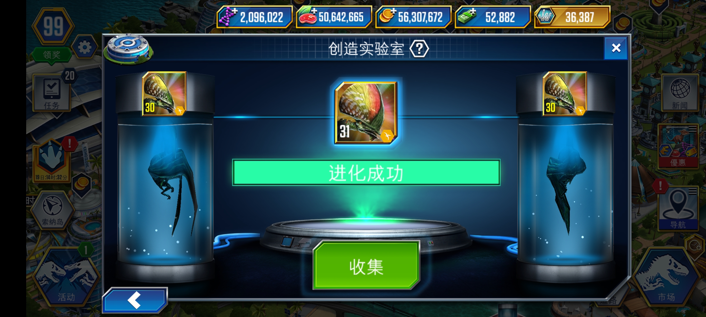 获得五个满级生物