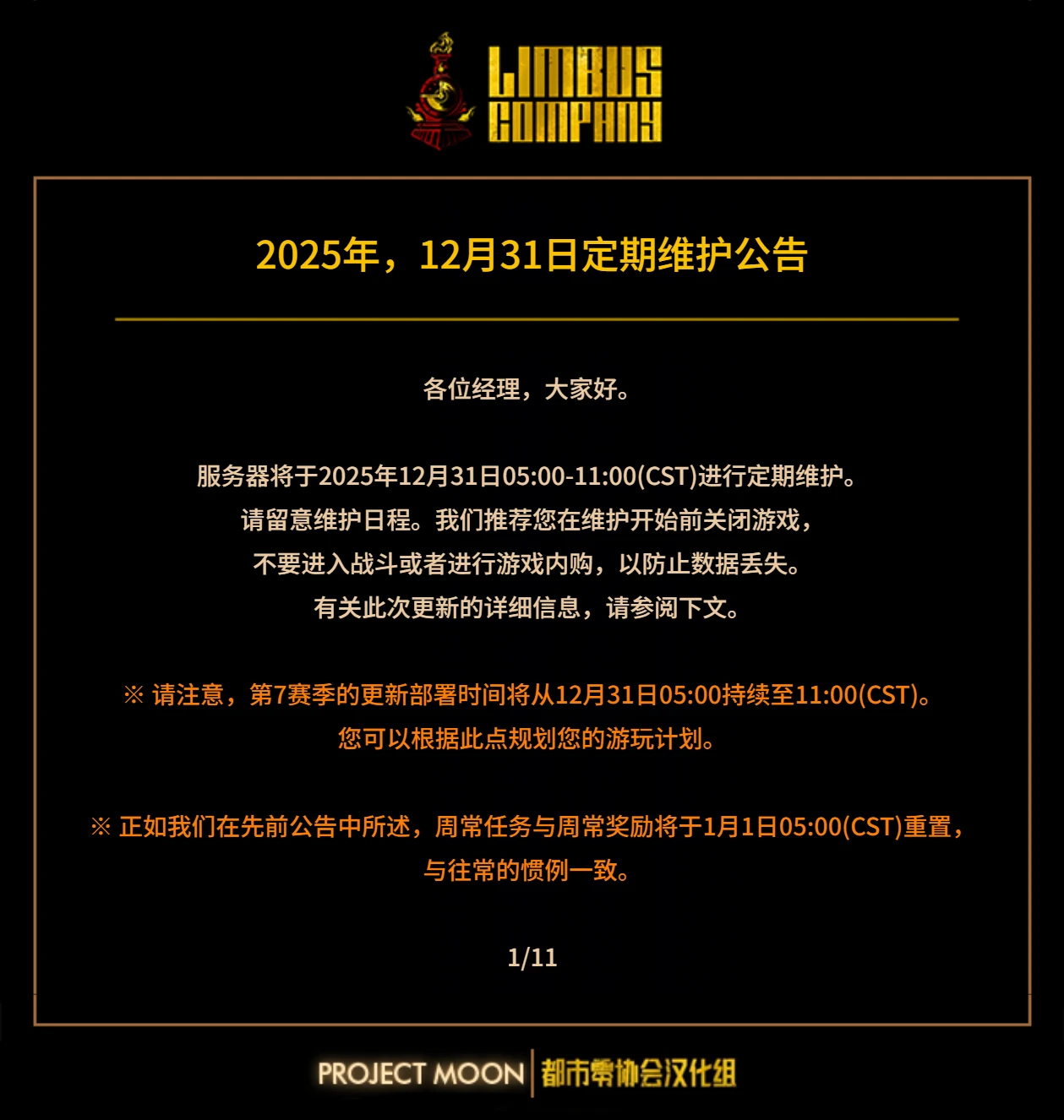 12.31 定期维护公告