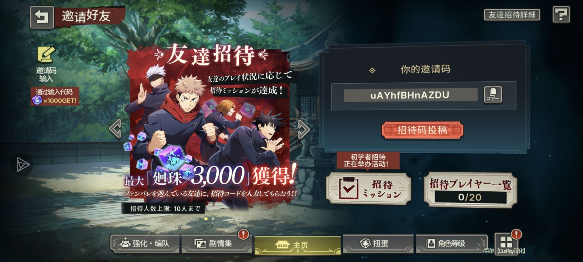 咒术回战日服邀请码