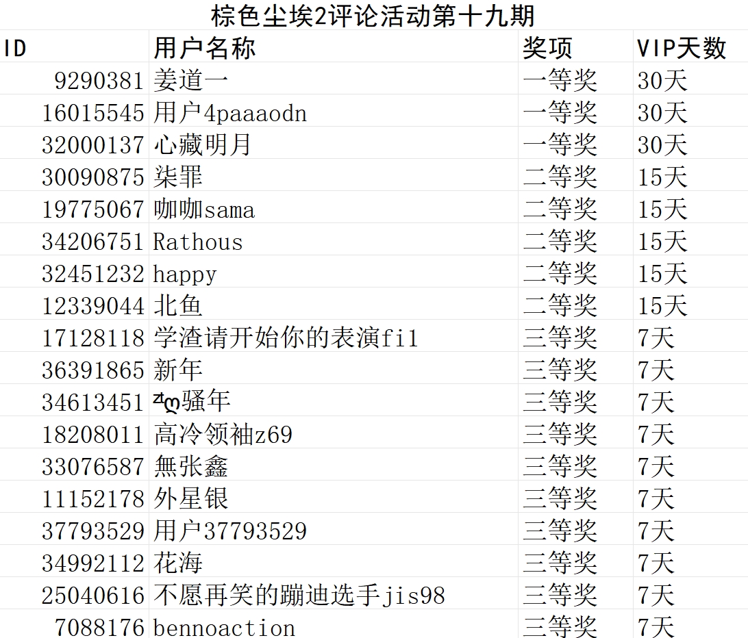 棕色尘埃2评论活动第十九期获奖名单