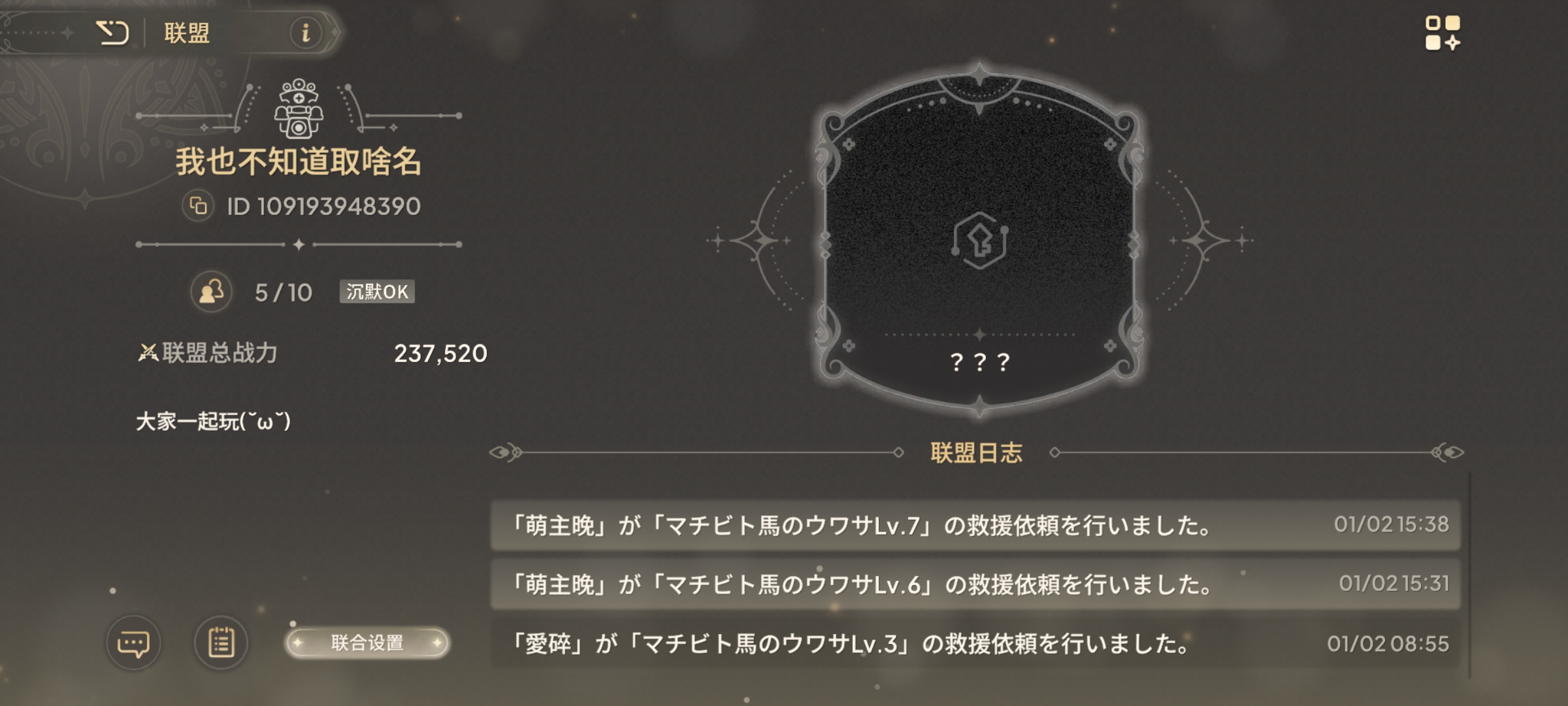 大概就是一个日服联盟,想加的都可以来,还差五个人嗯对