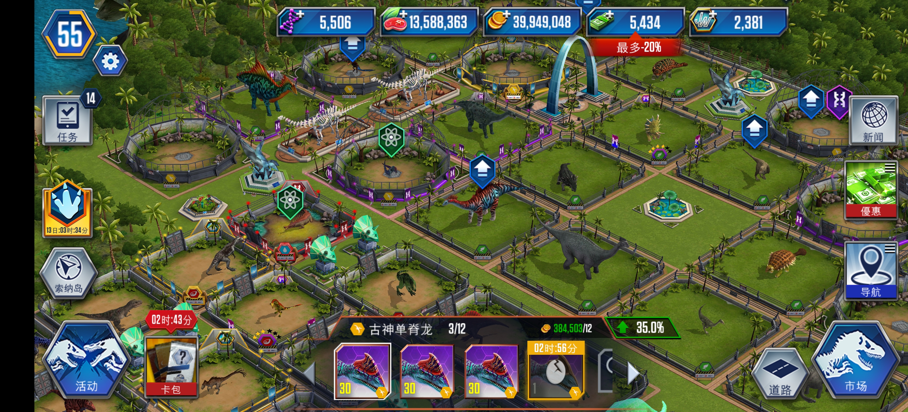 我是收集,我所有的恐龙都必须有两只40级的。如果可以的话,还可以搞几只30级的。如果有混种的话,会搞三只40级的,一只混种,剩下两只留着。