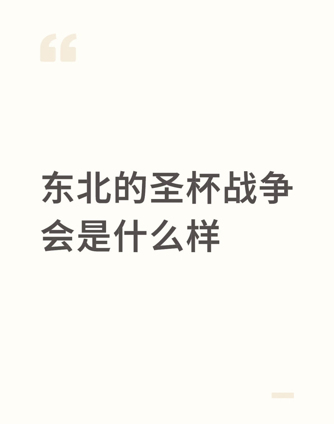 如果东北有圣杯战争会是什么样?