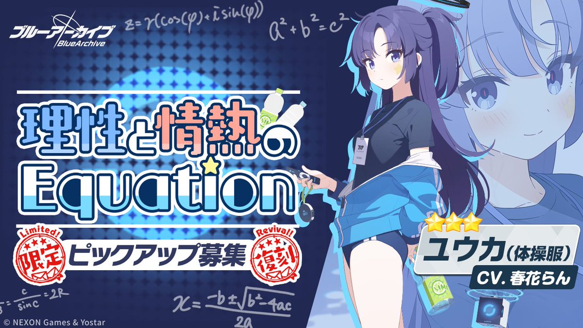 限时限定复刻招募【理性和情热的方程】即将开启!在本次招募中,3★限定成员「优香(体操服)」的招募概率得到提升!