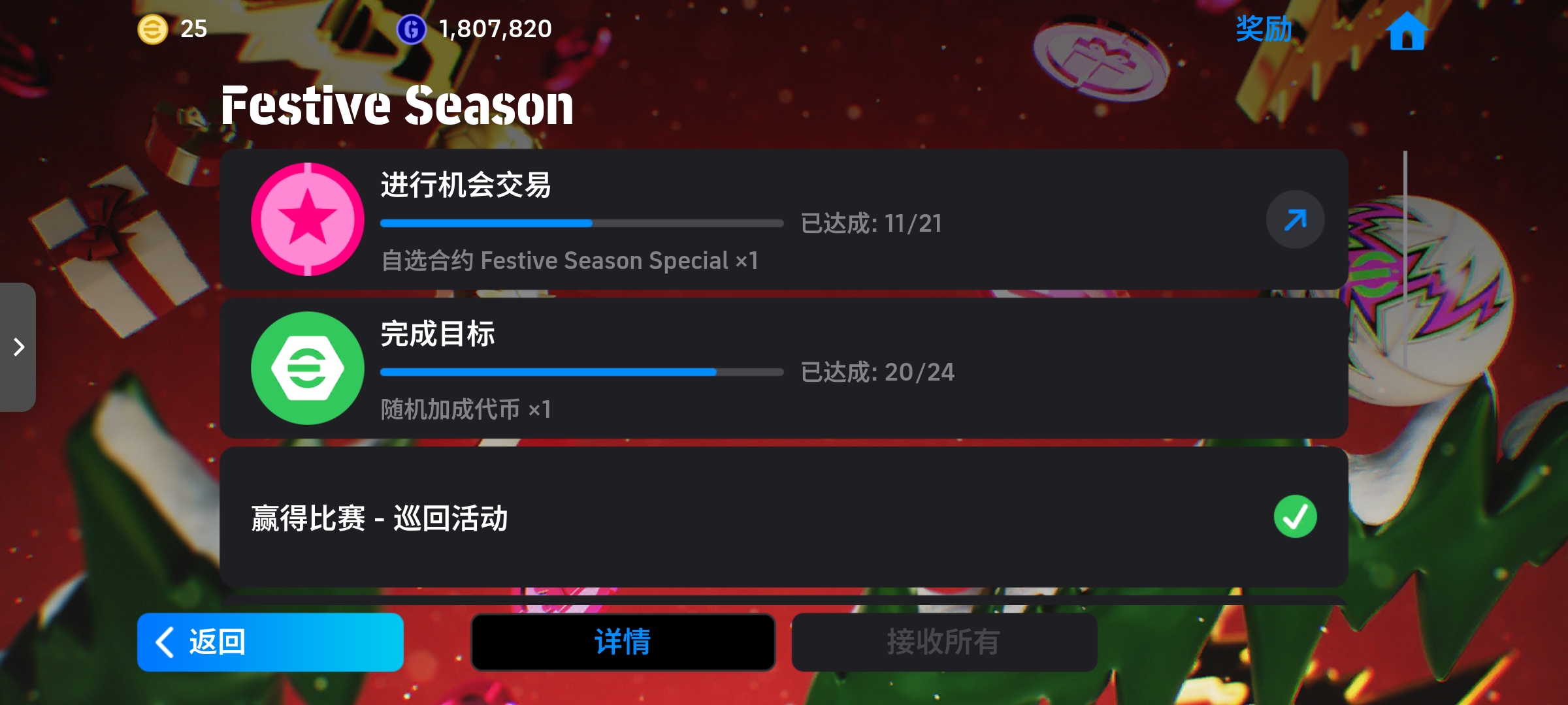 自选劵是圣诞卡池抽够21发才能领 任务目标那个明天维护完还有一周任务做完就OK了