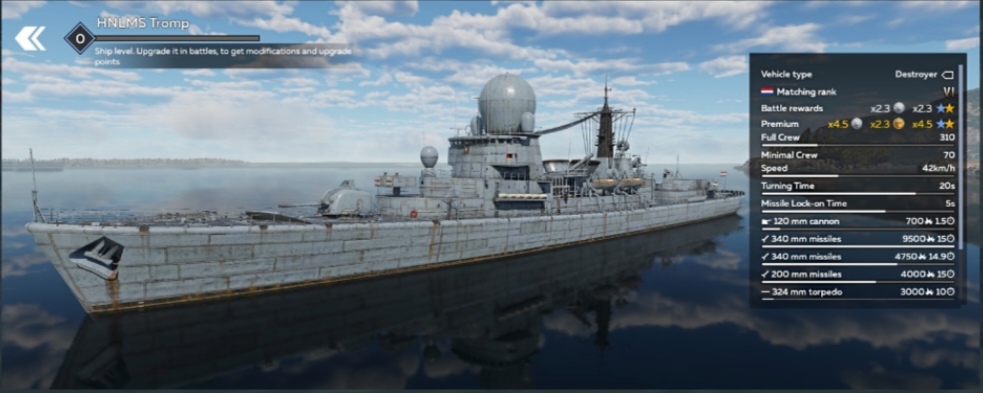 「HNLMS 特罗姆普号(VI级)将在《战争雷霆》手游(WTM)新赛季开始时,可通过舰船战役中的中型或大型奖杯获取。」