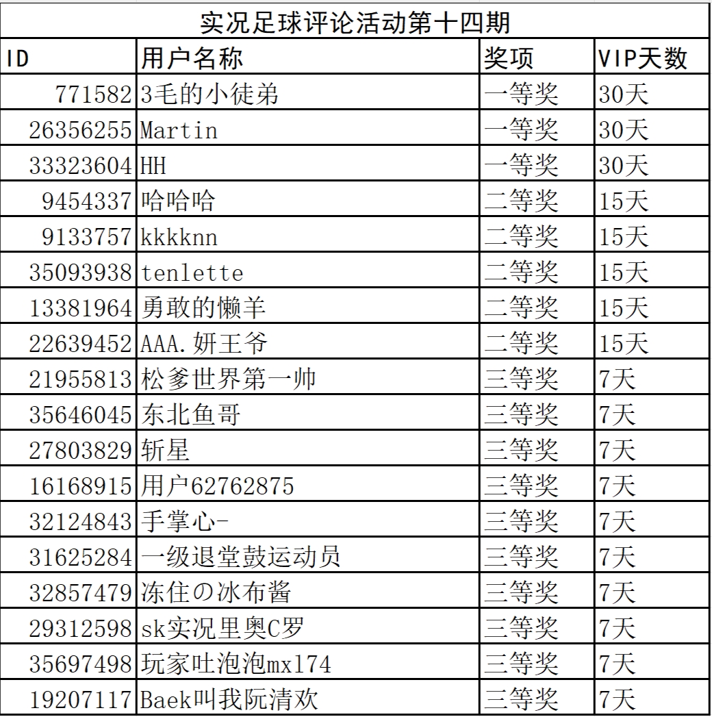 实况足球评论活动第十四期获奖名单