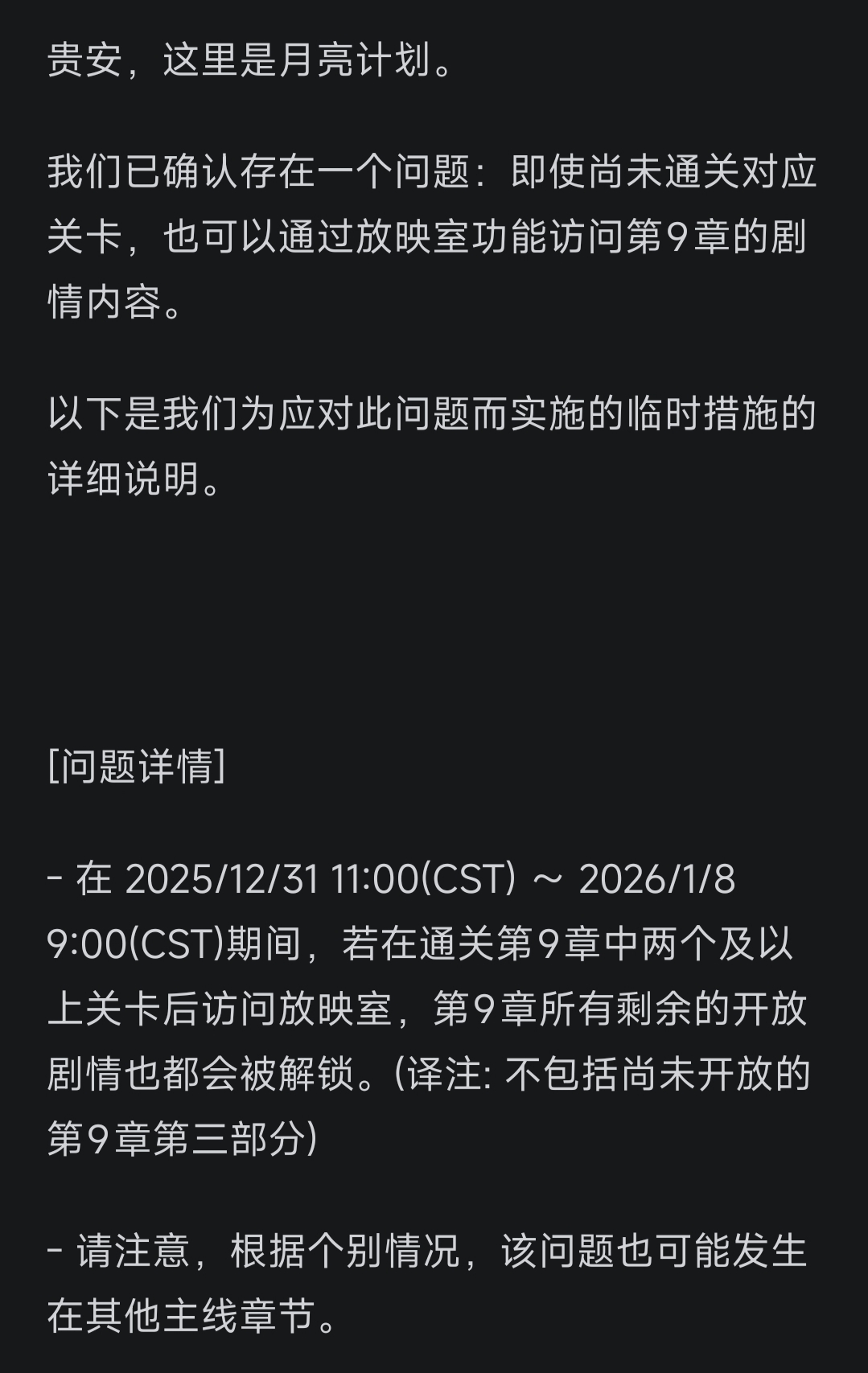 公告:1月8日定期更新后,放映室功能问题的临时应对措施