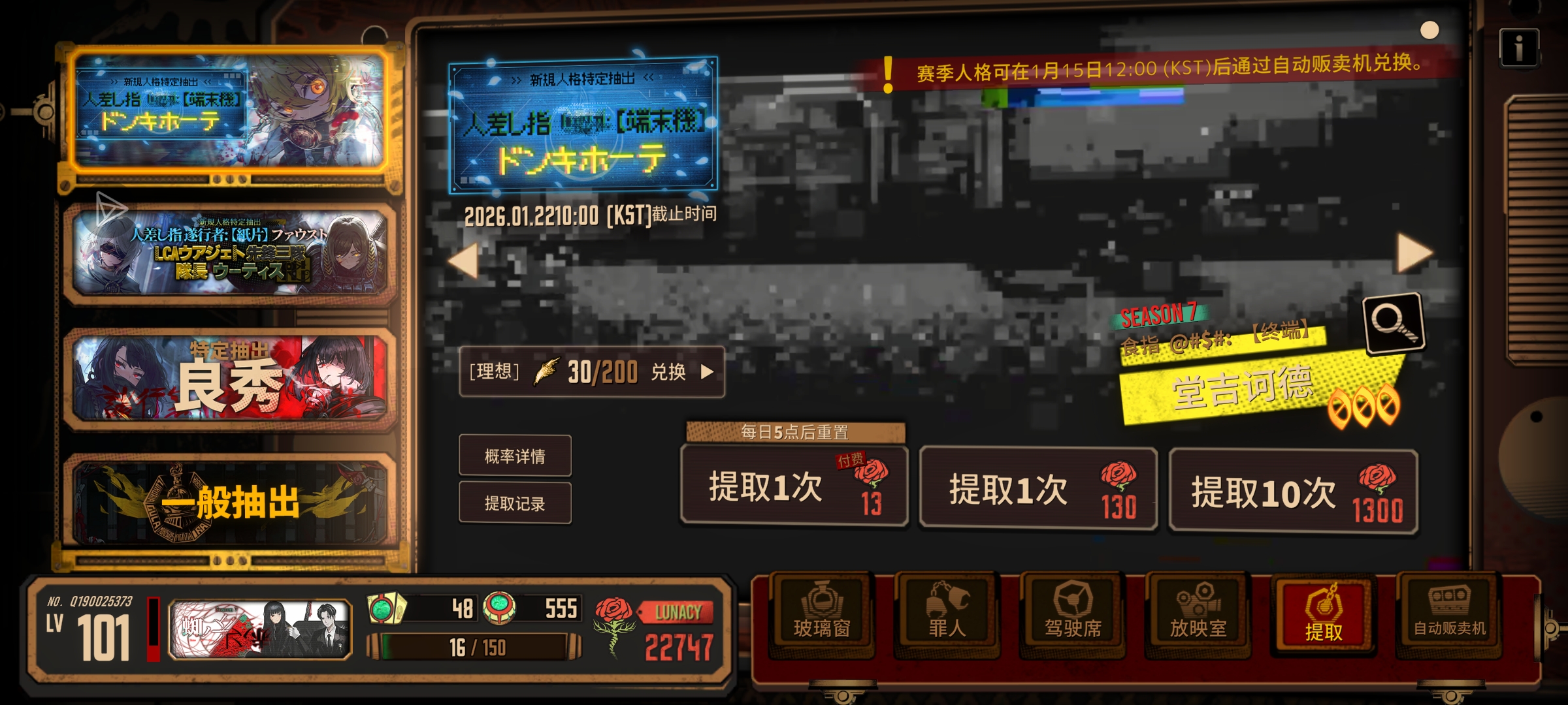 不抽了不抽了,小唐太可爱了但是30抽已经是我的极限了,虽然瓦夜频率提高导致瓦夜稀有程度降低不攒也可以过日子但还是攒着比较安心