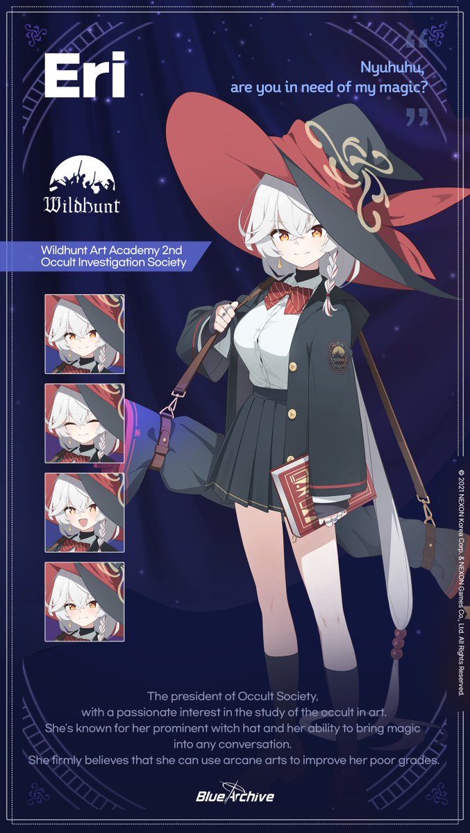 对研究艺术中的神秘学有着浓厚的兴趣,她以杰出的女巫帽和带来魔法的能力而闻名而出现在任何谈话中。