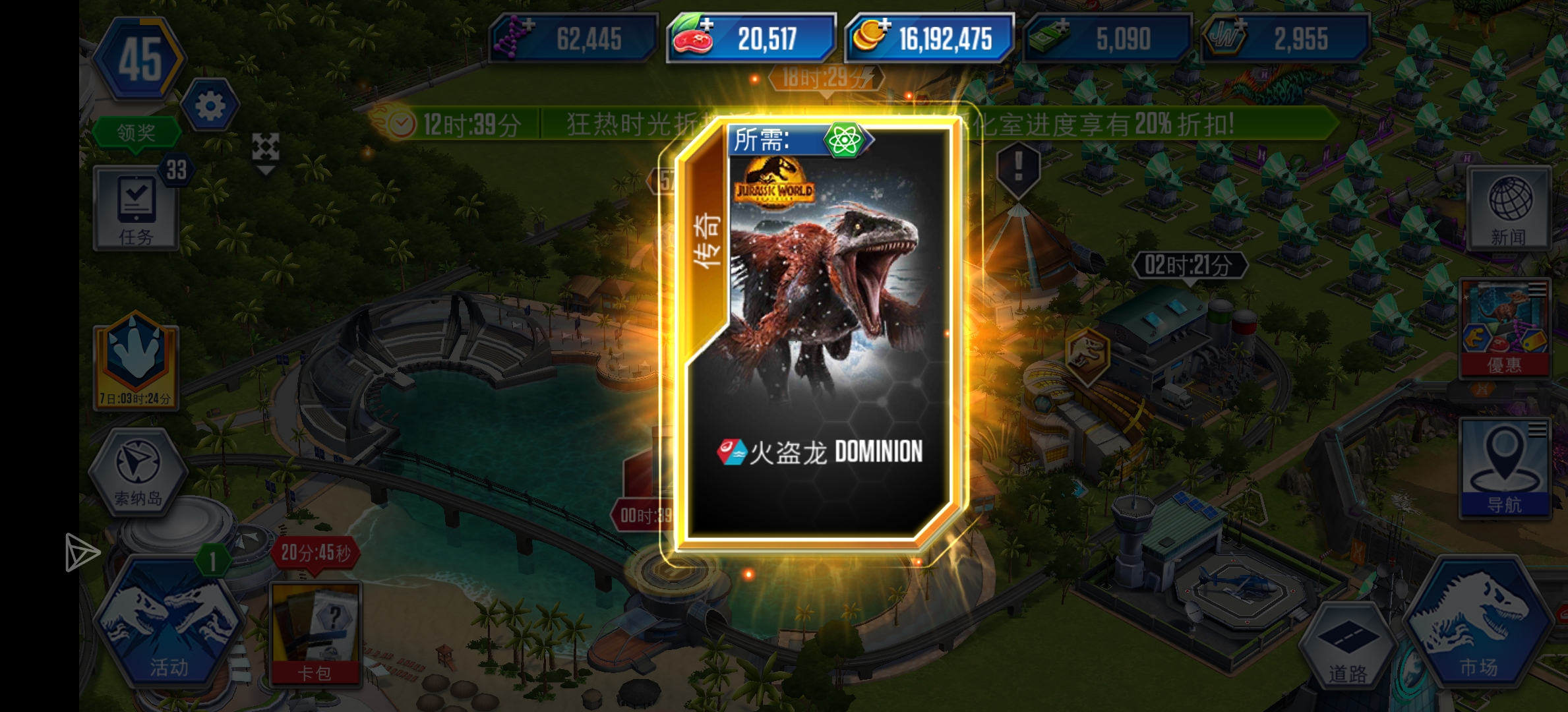 升50级拿贸易港,六十几拿巨兽之战,你这食物也太少了,赶紧先整贸易港换食物,没有食物根本发展不起来,那么龙都没法升级[haobang][chaozan][jiayoujiayou]