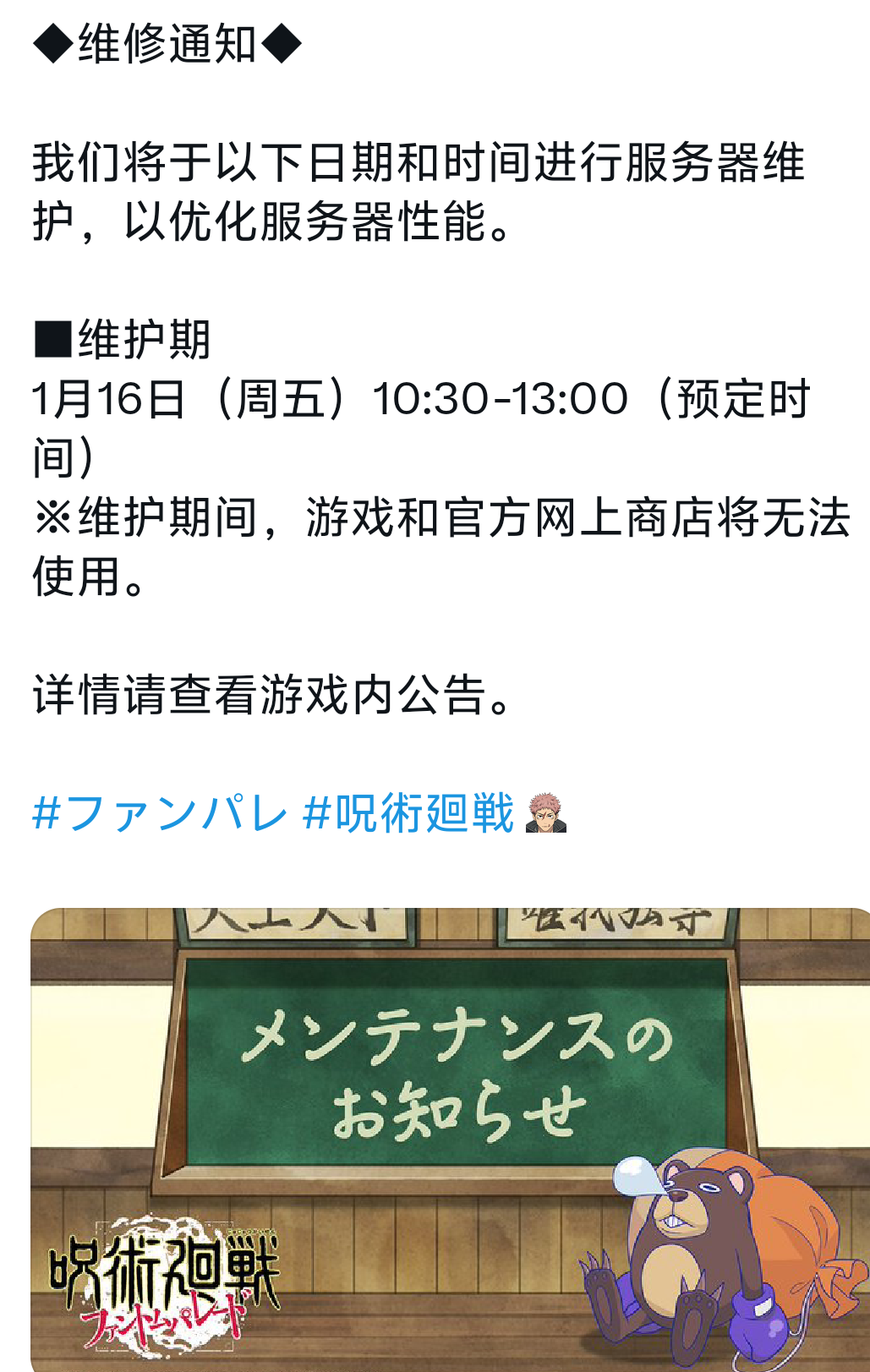 16号早上9点半服务器维护更新,记得提前清一下体力