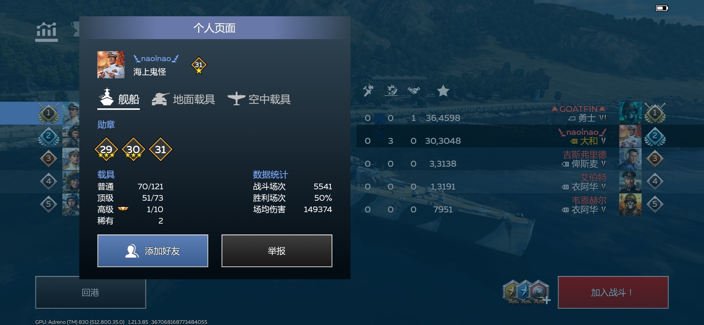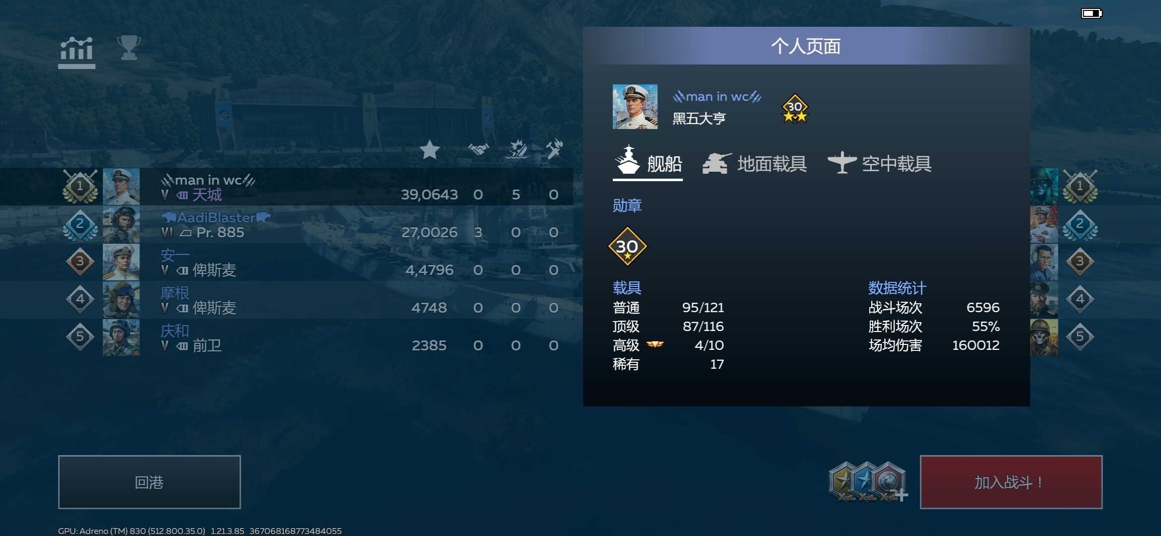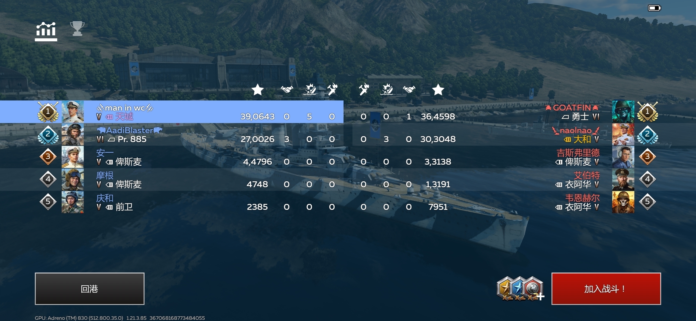 通杀😎,两个胜率50%开着勇士、大和,干不过我一个开着天城胜率55%的,哈哈哈哈哈