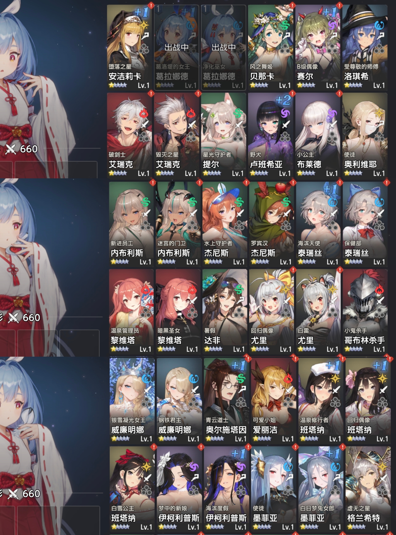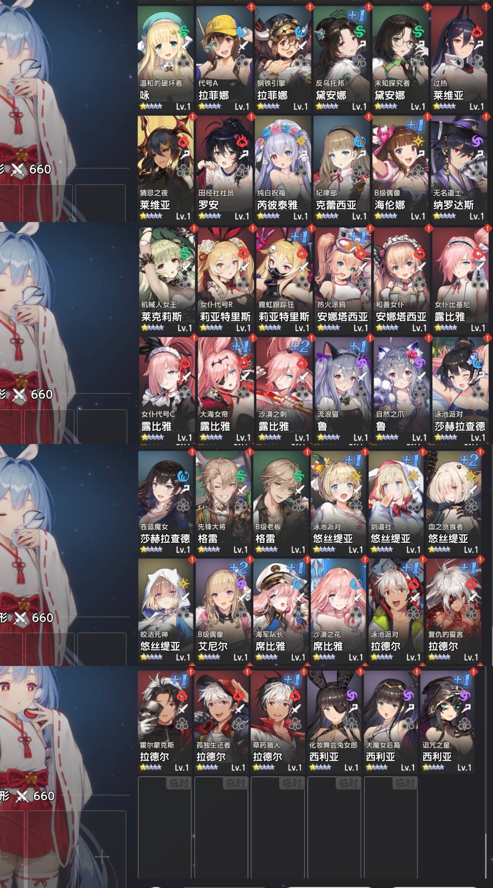 然后打物理队,c位等话,水系达丽安但是你错过了限定皮,所以补原皮,火系补一个兔弓原皮,风系把内布利斯泳装皮给补了或者补提尔的兔女郎,光系补神ut要➕4,暗系卢班希亚