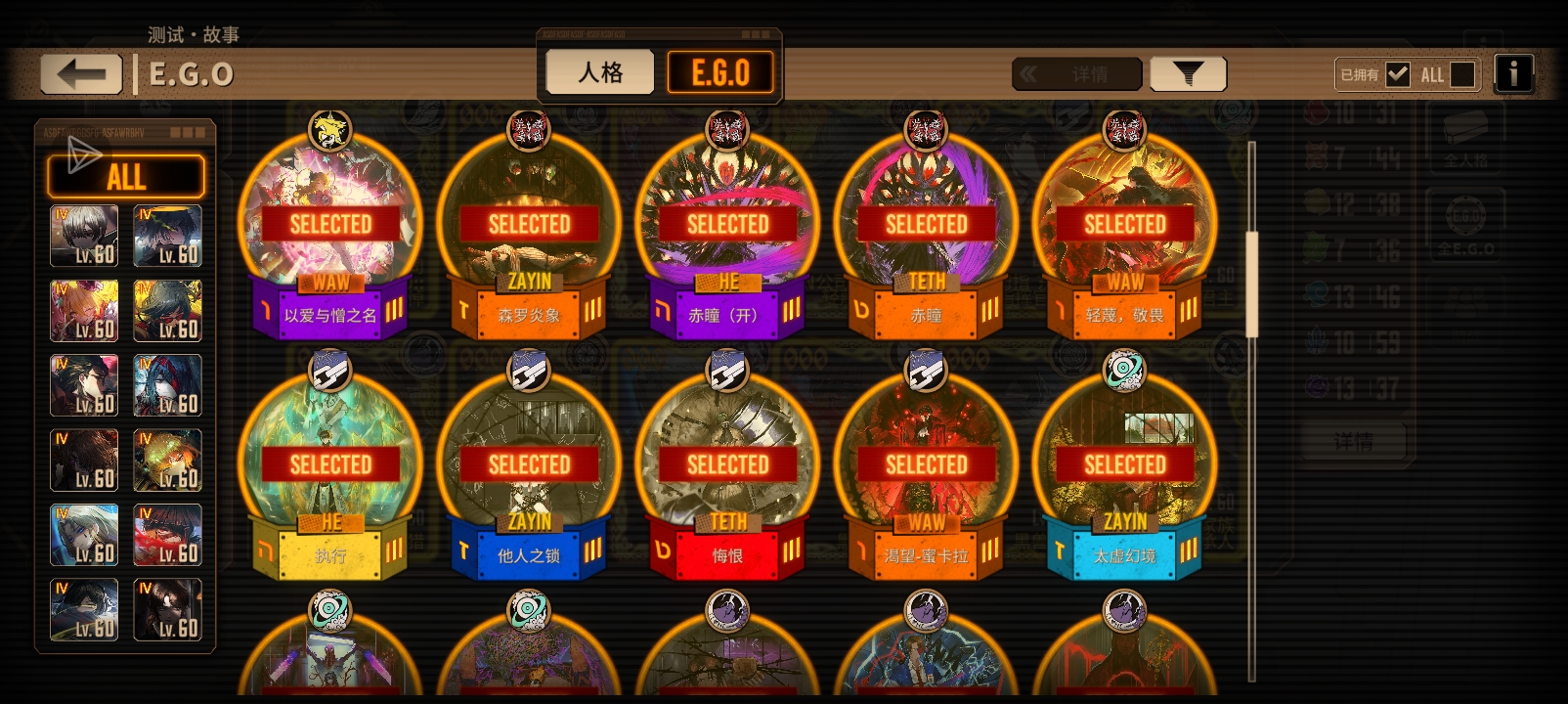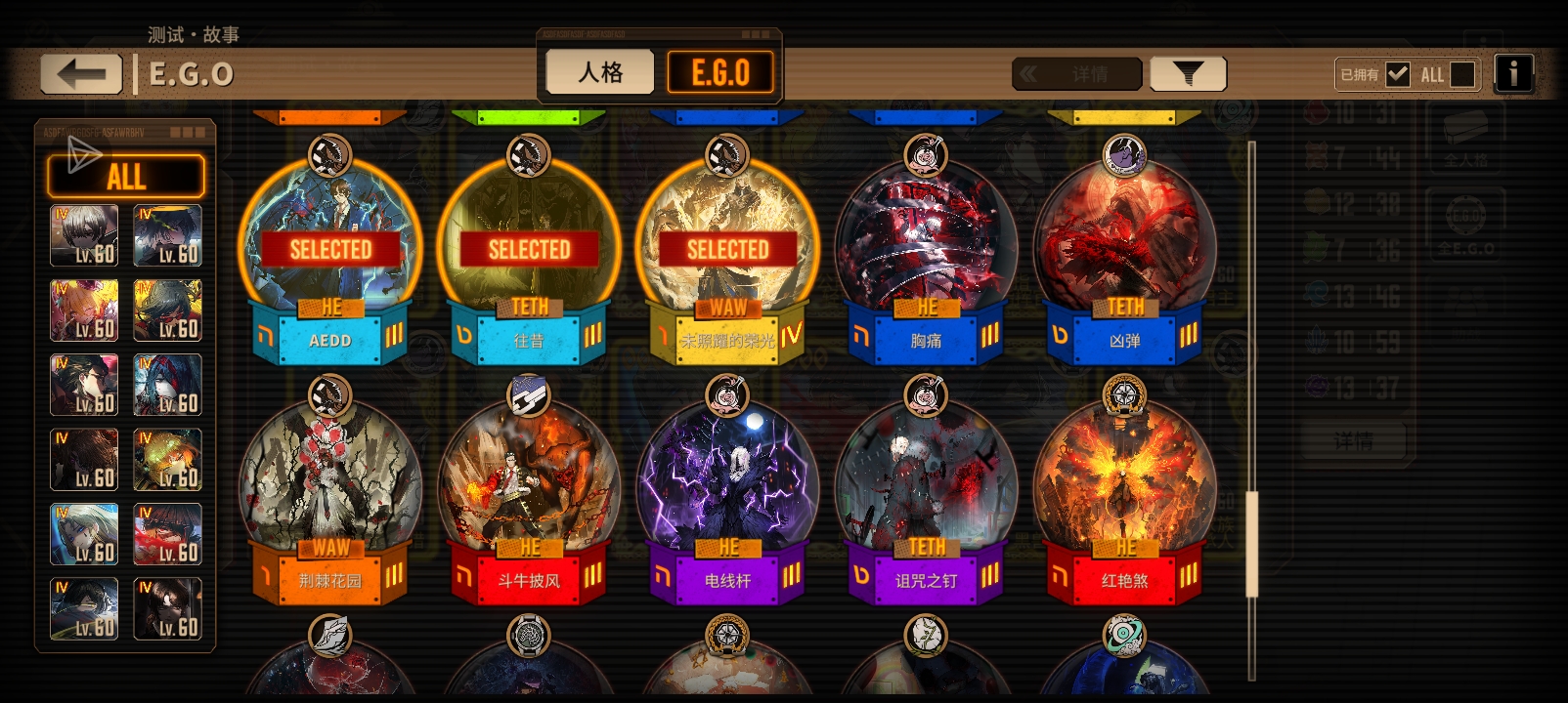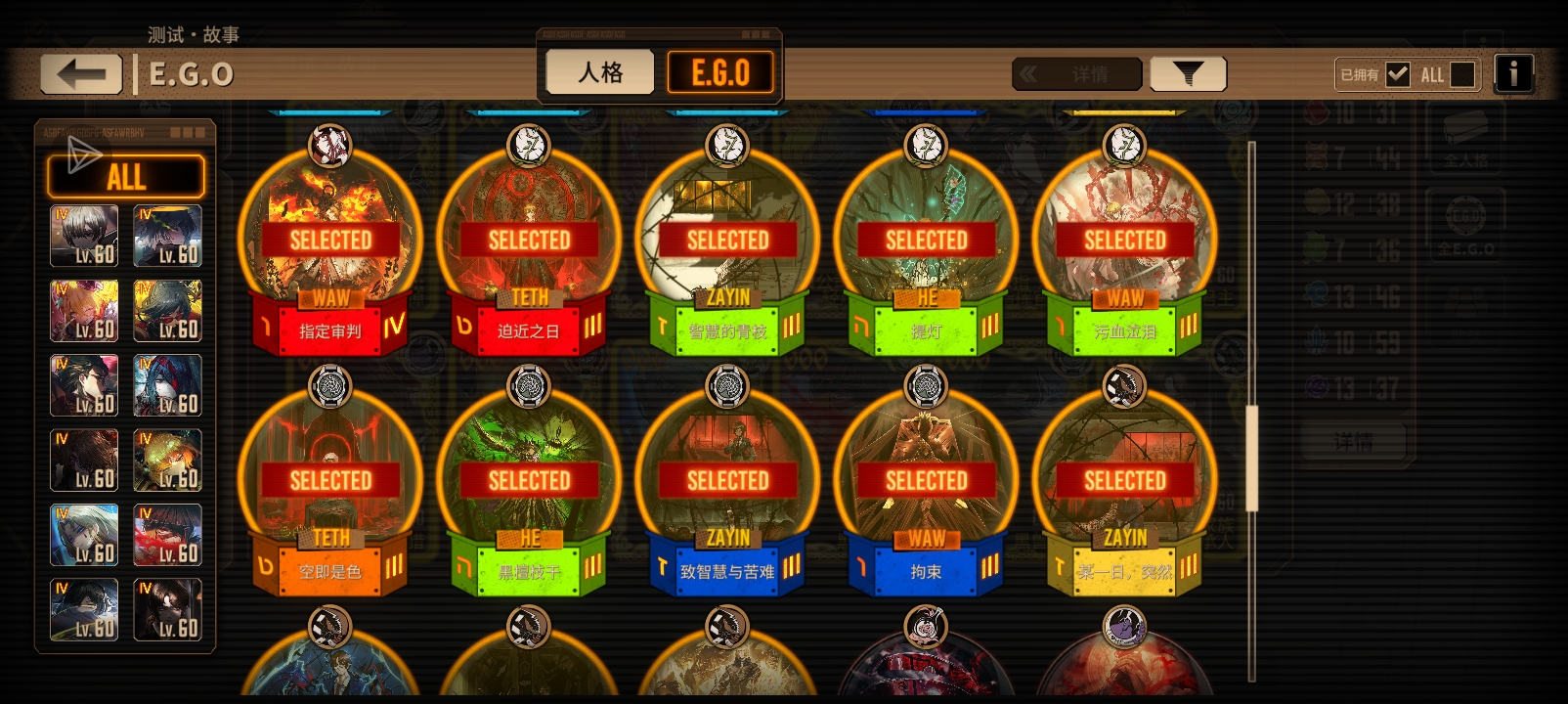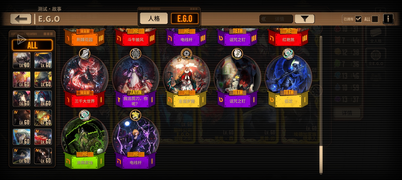 刚攒满200个黄箱子,各位大佬,帮我看一下,我应该换什么人格,或什么E.G.O?