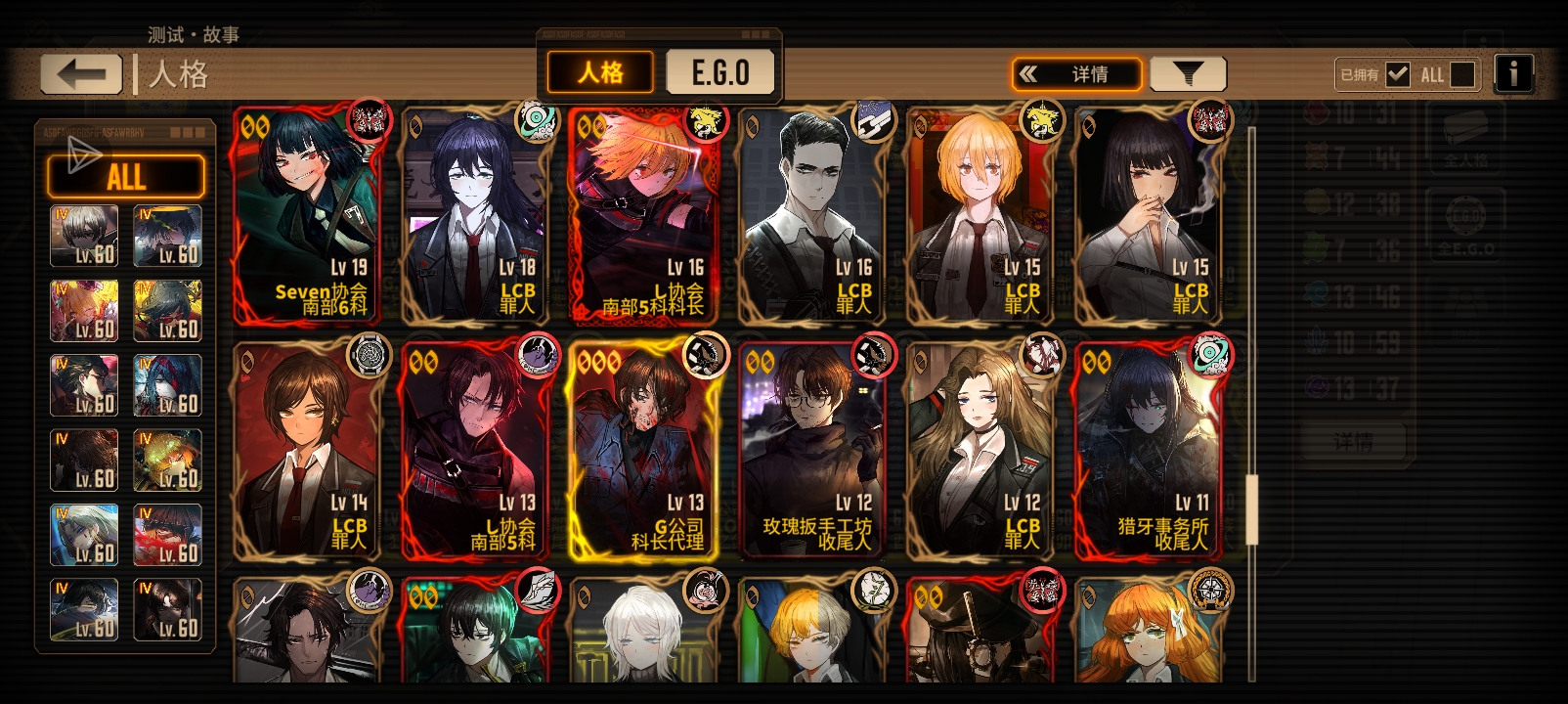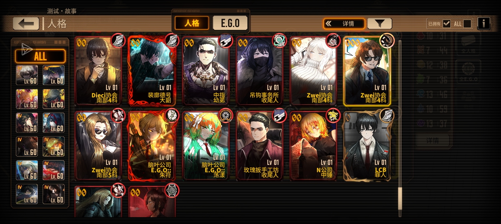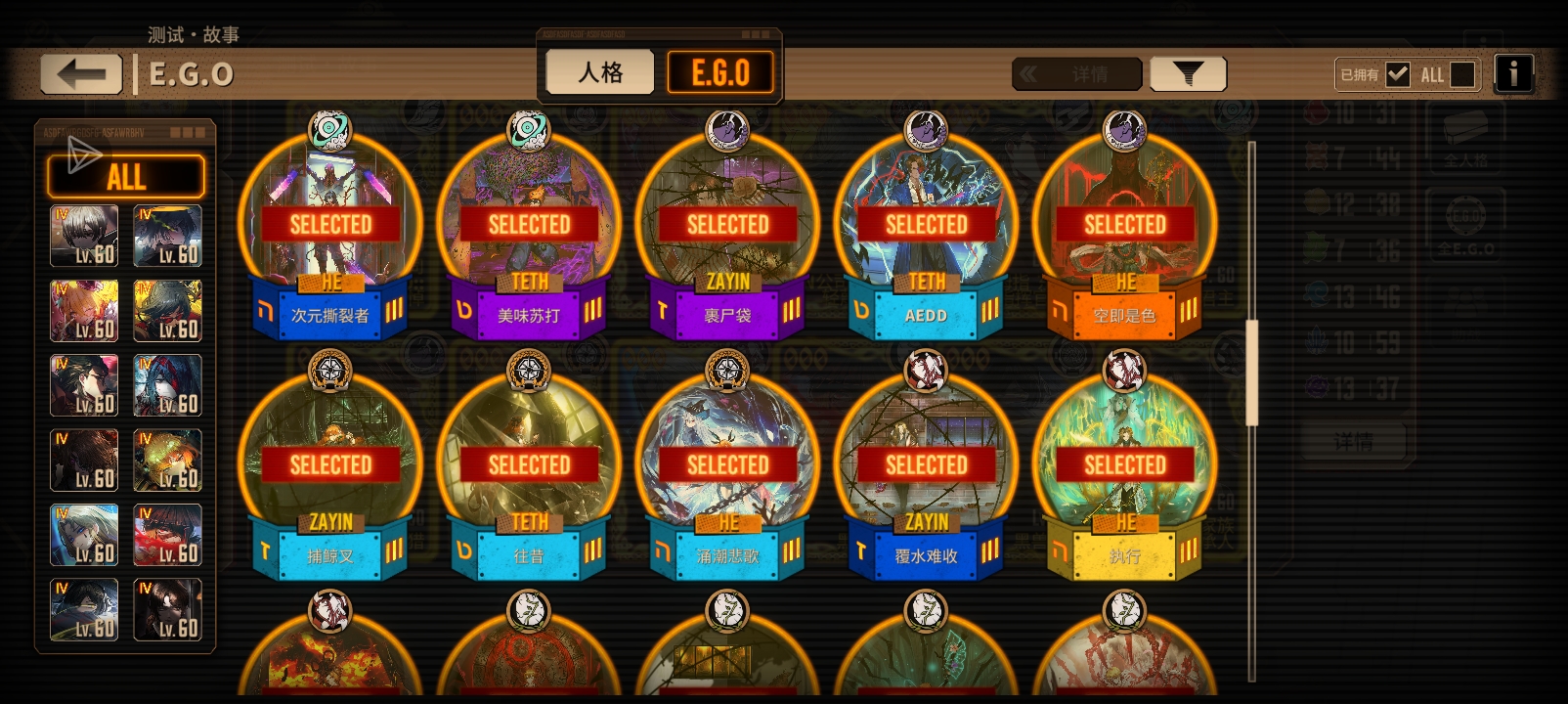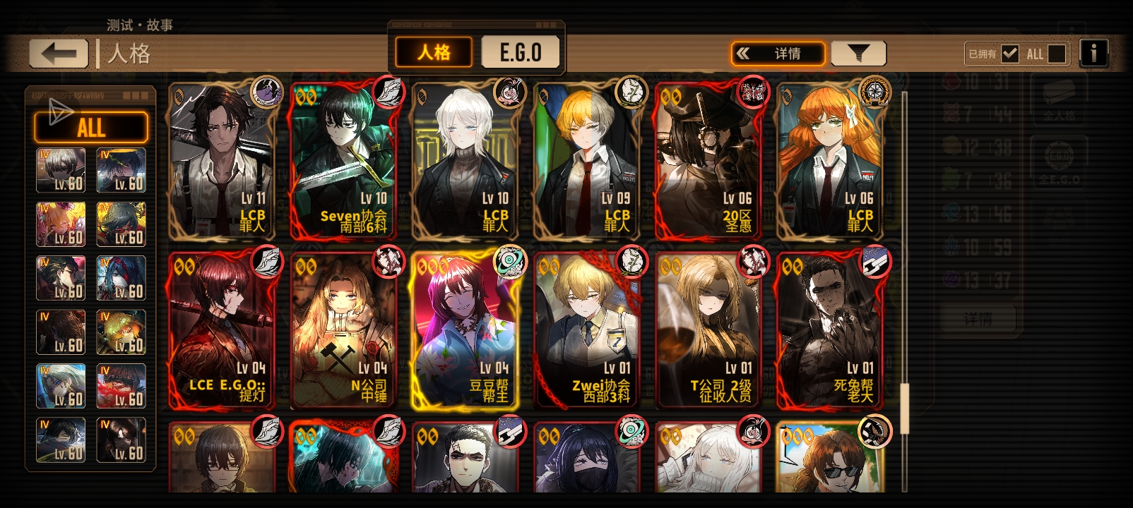 刚攒满200个黄箱子,各位大佬,帮我看一下,我应该换什么人格,或什么E.G.O?