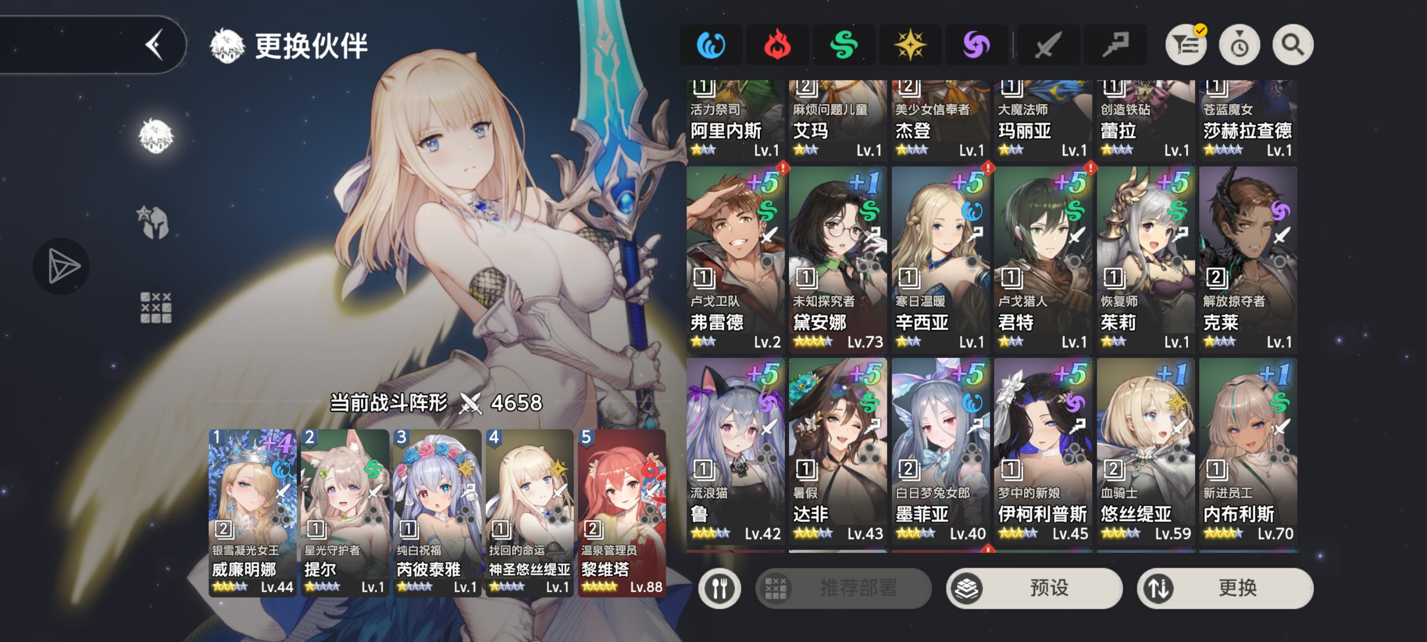 不知道你有没有b级偶像海伦娜没有就选个 葛拉娜德池子里 达菲 伊柯利普斯 你角色没截全 最好再加个莱维亚田径社社长新手券可以选。