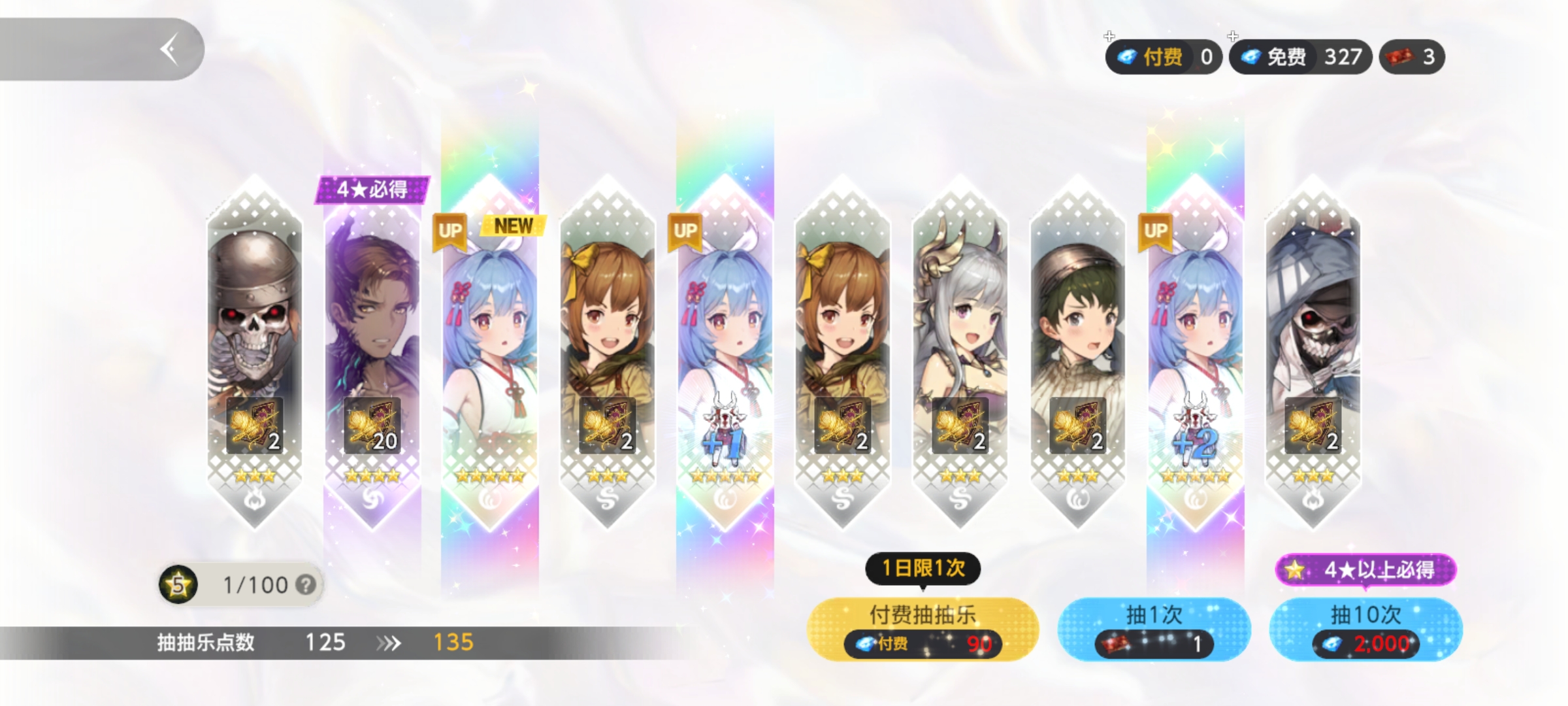 我+2也是100抽左右[maopao](现在一次都没有出过三个)