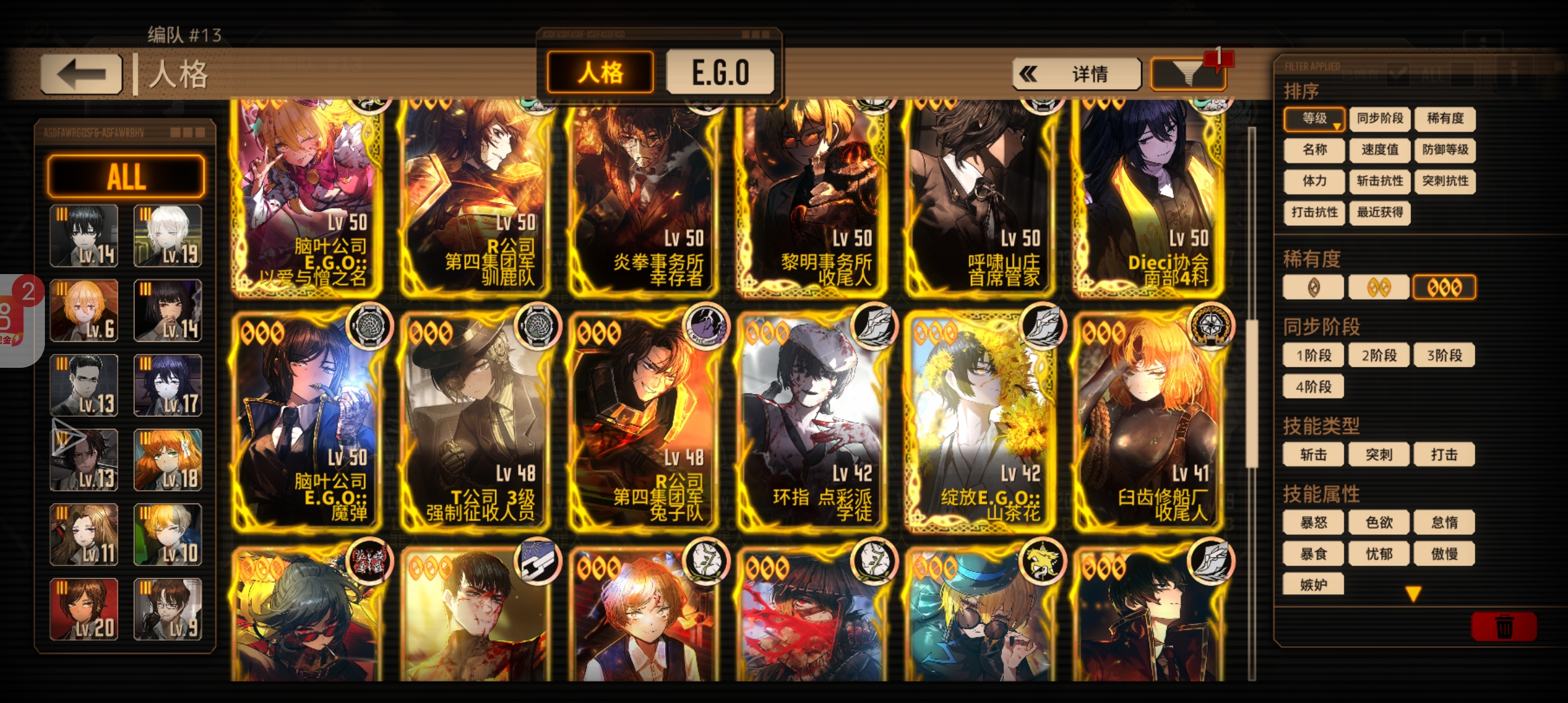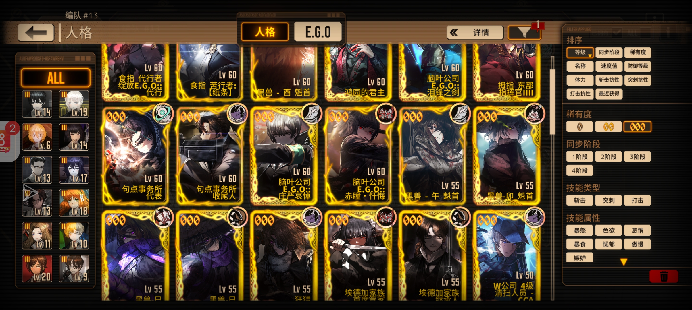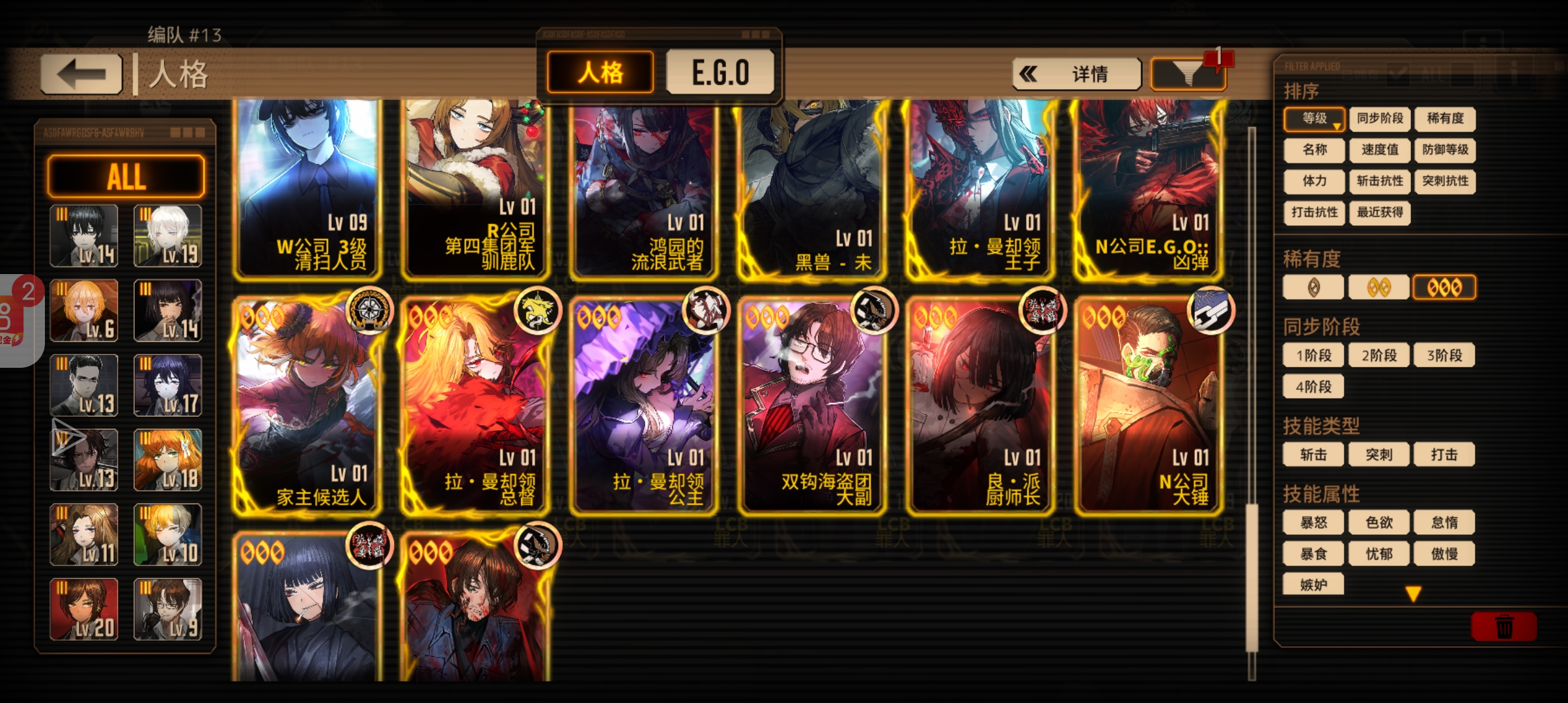 黑兽的话两只兔子,但这赛季主人格是良秀所以良秀碎片留着。沉沦完全毕业了,剩下就看要换些ego了或看看新人沉沦人格