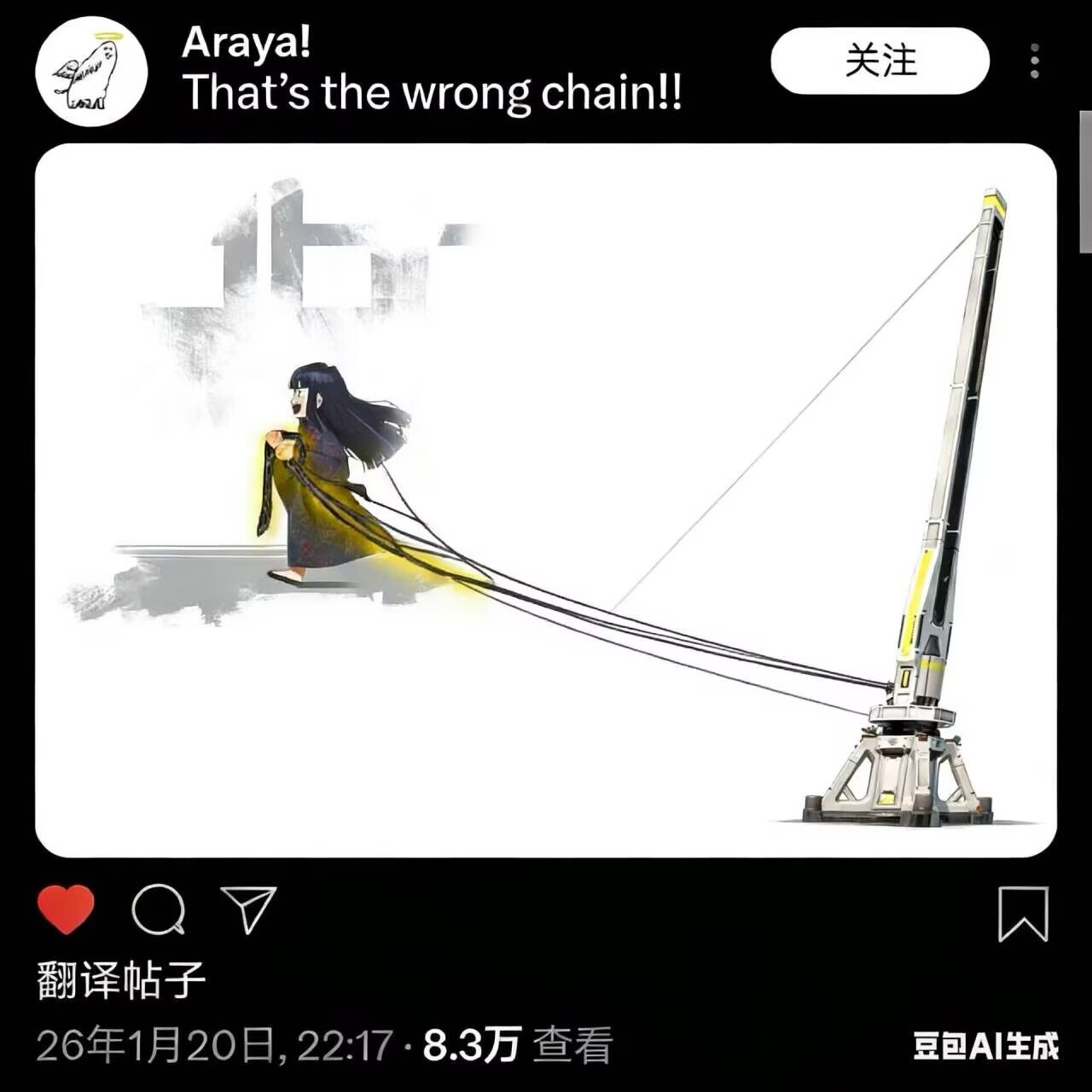 据都市野史记载,阿良夜当时拖着锁链去救良秀发现锁链最多只能拖80米,而良秀离锁链起点有80.2米,阿良夜怎么调位置都到不了良秀身边直接红温气长大了,最后把良秀朝自己方向拖了0.2米才够着